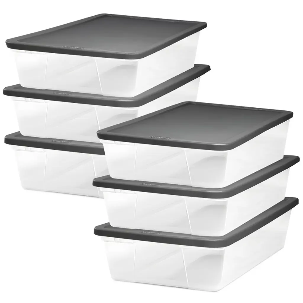 Tribello Small Plastic Storage Container Bin With Latching Lids For Organizing - Tinted - (8’ X 6” X 3”) Mini 1.25 Quart - Set Of 6