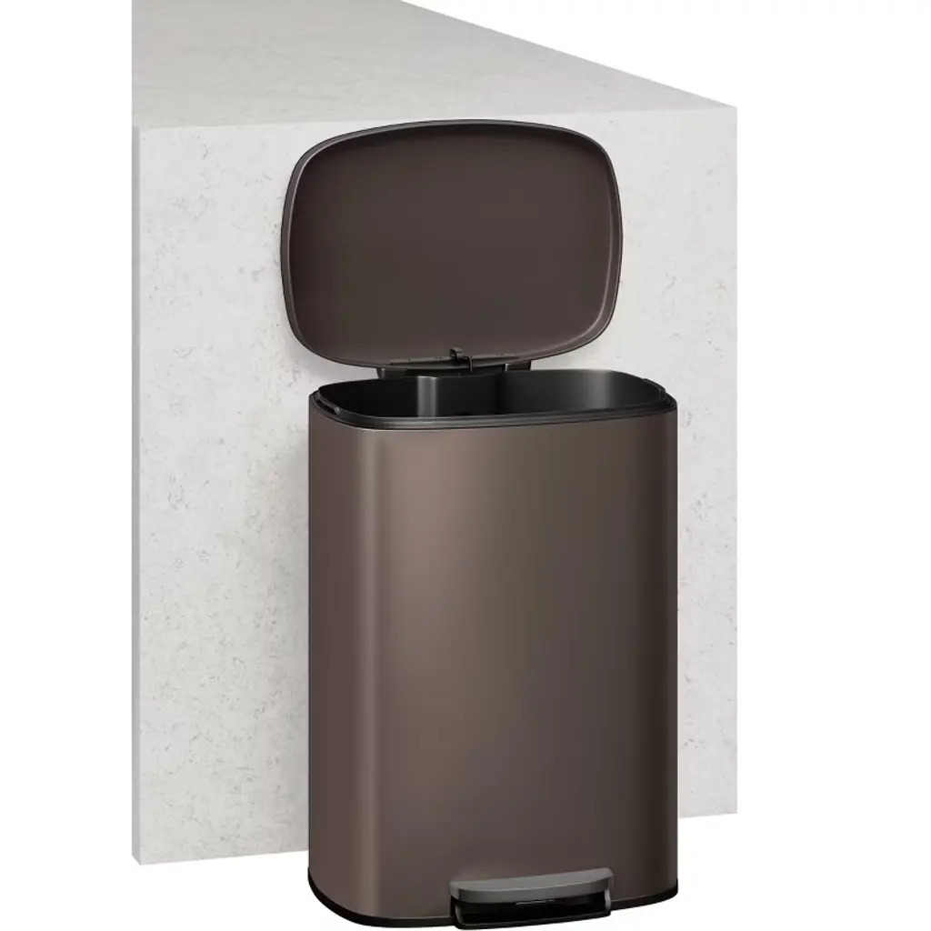 Kitchen Trash Can & Step-On Bin ¨C TROPOW 13 Gallon Brown Metal Garbage Can with Soft-Close Lid & Inner Bucket"(Note: "Kitchen Trash Can" and "Step-On Bin" are confirmed high-volume Amazon search terms.)Product Features:13 Gallon Large Capacity DesignSpacious footprint (16.73"L¡Á14.65"W¡Á25.98"H) fits standard kitchen islands; holds 32¡Á16.9oz bottles or 70¡Á12oz cans.Premium Powder-Coated Metal ConstructionStainless steel shell with brown finish + polypropylene inner bucket (rustproof/scratch-resistant).Step-On & Soft-Close LidIndustrial steel pedal (150,000+ cycles) with ABS lid (300,000+ cycles); opens to 95¡ã for hands-free use.Smart Functional DetailsAnti-slip feet, rear handle, liner ring for bag security, and fingerprint-resistant finish.Multi-Room VersatilityIdeal for kitchens, laundry rooms, or offices (includes 1-year warranty).Specifications:Brand: TROPOWColor: BrownMaterial: Powder-coated stainless steel + polypropyleneSpecial Features: Odor seal, quiet close, removable bucketDimensions: 16.73"L ¡Á 14.65"W ¡Á 25.98"H