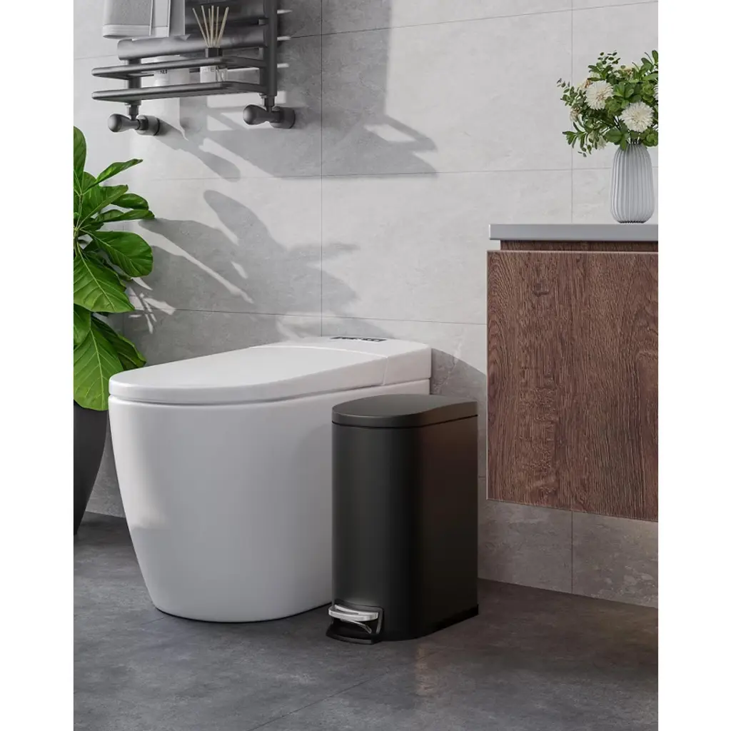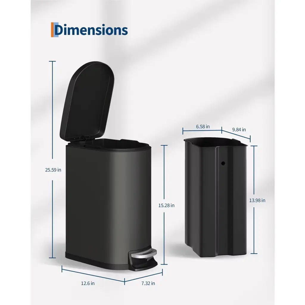 Step Trash Can & Bathroom Bin ¨C TROPOW 2.6 Gallon Black Metal Garbage Can with Soft-Close Lid & Inner Bucket"(Note: "Step Trash Can" and "Bathroom Bin" are confirmed high-volume Amazon search terms.)Product Features:2.6 Gallon Slim DesignCompact footprint (12.6"L¡Á7.32"W¡Á15.28"H) fits narrow spaces; holds 6¡Á16.9oz bottles or 15¡Á12oz cans.Premium Metal ConstructionPowder-coated stainless steel shell + polypropylene inner bucket (rustproof/odor-resistant).Step-On & Soft-Close LidBrushed steel pedal (150,000+ cycles) with ABS lid (300,000+ cycles); opens to 95¡ã for hands-free use.Smart Functional DetailsAnti-slip feet, rear handle, liner ring for bag security, and fingerprint-resistant finish.Multi-Room VersatilityIdeal for bathrooms, bedrooms, or offices (includes 1-year warranty).Specifications:Brand: TROPOWColor: BlackMaterial: Stainless steel + polypropyleneSpecial Features: Odor seal, quiet close, removable bucketDimensions: 12.6"L ¡Á 7.32"W ¡Á 15.28"H