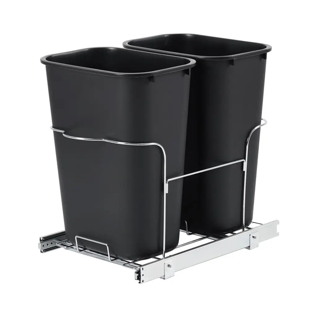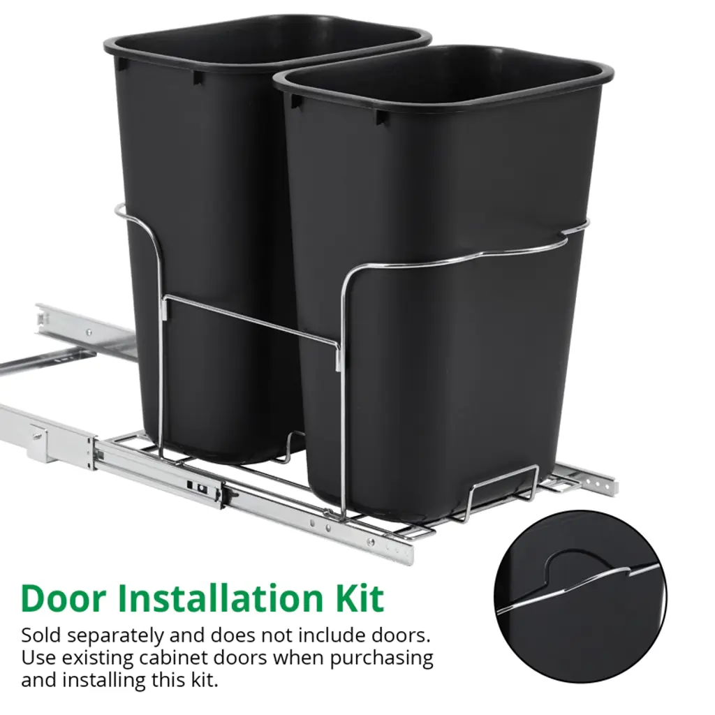 Imagine kitchen clutter disappearing with a smooth pull—this clever dual-bin system tucks neatly under cabinets, keeping trash and recycling sorted yet out of sight, all while heavy-duty steel slides deliver buttery-quiet operation that lasts. Highlights at a glance:Tuck-away trash and recycling station that disappears under cabinetsSilent-gliding steel runners that never stick or squeakDual bins perfect for waste sorting in tight spacesIndustrial-strength slides built to last through daily useOdor-resistant plastic that wipes clean in secondsSoft-close action that works quietly every timeAdaptable organizer fitting any cabinet styleSpecification:Size: 15.35x24.02x17.13 / 15.87x20.94x19.69 / 15x22.44x21.73 inchesFit cabinet size: 15.91x24.8x18.31 / 16.93x21.26x20.87 / 15.75x23.23x29.92 inchesCapacity: 2x25 / 2x30 / 2x35 QTMaterial: steel Color: grey / balck+grey / blackFriendly note:For a perfect fit, double-check your cabinet measurements before mounting.Lightly wipe down the steel slides occasionally to maintain that effortless glide.Avoid overloading to keep the sliding action buttery-smooth.For best results, use trash bags that fit snugly within the compartments to avoid spills and ensure cleanliness.Packing list:1x Pull-out trash can 1x Hardware bag1x Assembly guide