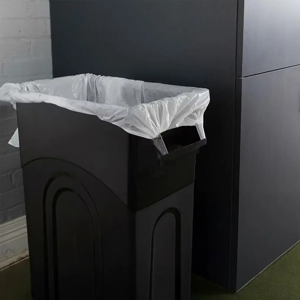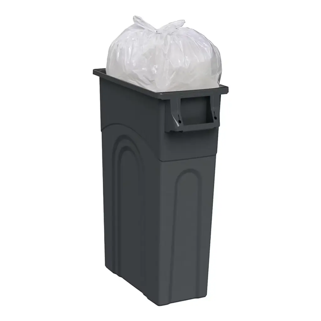 Upgrade your home or workspace with the United Solutions Highboy Waste Containers, the sleek and space-saving trash cans designed for maximum convenience. Their tall, slim profile fits effortlessly in tight spaces, making them an excellent choice for kitchens, bathrooms, offices, garages, and patios. Despite their narrow design, this 23-gallon trash bin provides ample capacity for household or commercial waste, keeping your space clean and clutter-free. Say goodbye to the hassle of struggling with full trash bags. The Highboy features vented sides and a tapered shape, allowing for smooth bag removal without tearing. The integrated dustpan edge makes sweeping messes easier, letting you brush debris directly into the bin without the need for a separate dustpan. Built from durable plastic, this garbage can is easy to clean and strong enough for everyday use. Designed with convenience in mind, the Highboy includes sturdy pass-through handles and a hand groove on the bottom, making lifting and transporting effortless. Whether you’re placing it indoors or outdoors, this large trash can is built to handle it all. The sleek black finish blends seamlessly with any decor, making it a practical yet stylish addition to any space. This set of wastebaskets ensures you have a waste solution for multiple areas, whether for home, office, or commercial use. Pair it with United Solutions’ Highboy Recycling Container (sold separately) for a complete waste management system. Keep your space neat and organized with this durable and functional Trash Bin Set from United Solutions.