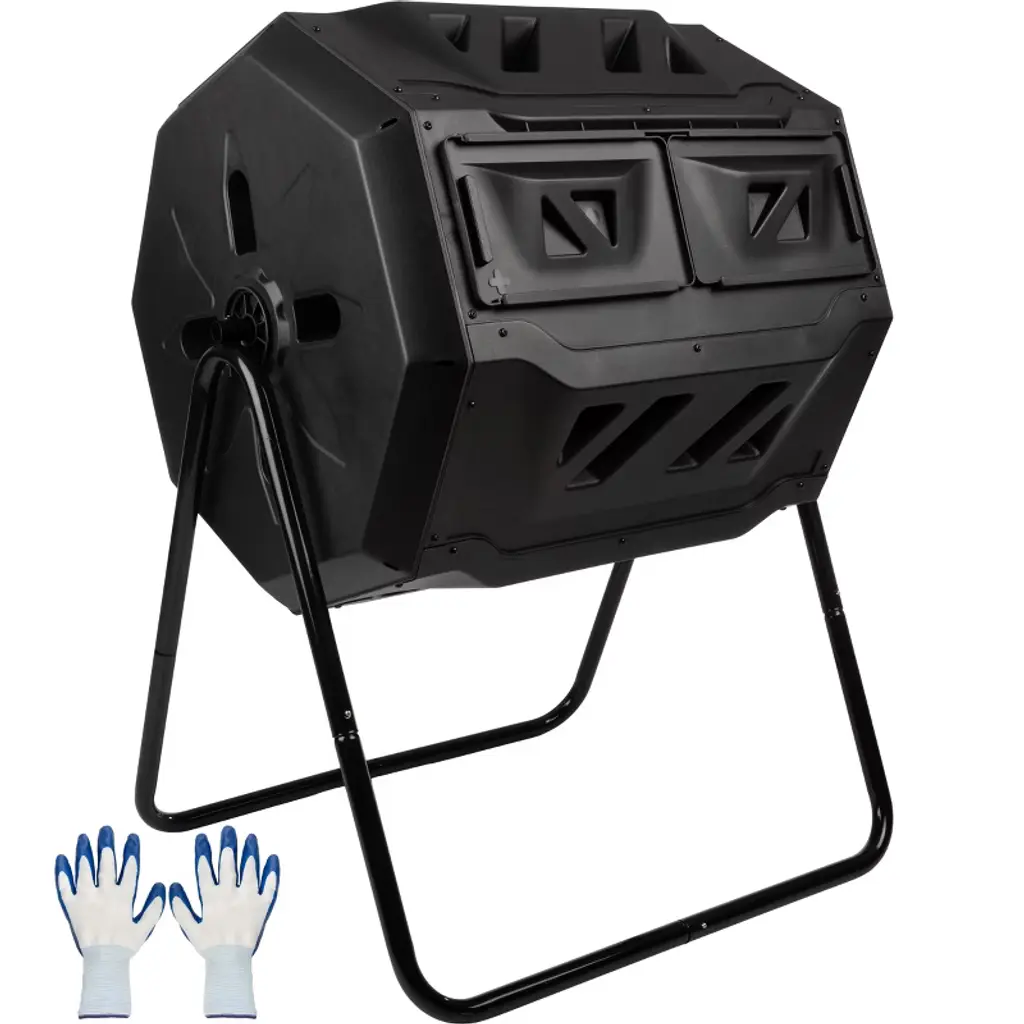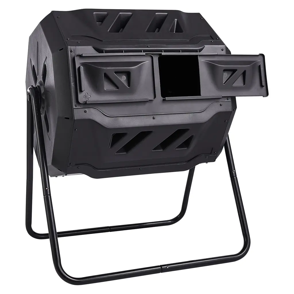 This Black Garden Compost Bin is a must-have for anyone wanting to turn their kitchen and garden waste into nutrient-rich compost. With a stylish modern look, it fits right into outdoor spaces and plays an important role in eco-friendly waste management. It's perfect for promoting healthy plant growth by efficiently recycling organic waste throughout the gardening year. Adjustable Design: The bin has a 360-degree rotating feature that makes it easy to access from all angles, so you can quickly add scraps or grab finished compost. This really enhances the user experience!Ventilated Structure: Built to improve airflow, this compost bin speeds up decomposition and results in richer compost. Good ventilation also keeps moisture and temperature in check, both essential for successful composting.High Capacity: With an impressive 42.3-gallon volume, this bin can handle a lot of garden and kitchen waste, making it perfect for families or keen gardeners with plenty of organic material to recycle.Durable Material: Made from high-quality UV-resistant plastic, this compost bin promises durability and effectiveness, standing up to the elements without falling apart. The opaque finish not only looks good but also protects the contents from sunlight.Easy Assembly: Setting it up is a piece of cake! You just need one person and basic tools, so you can get started on your composting journey quickly!