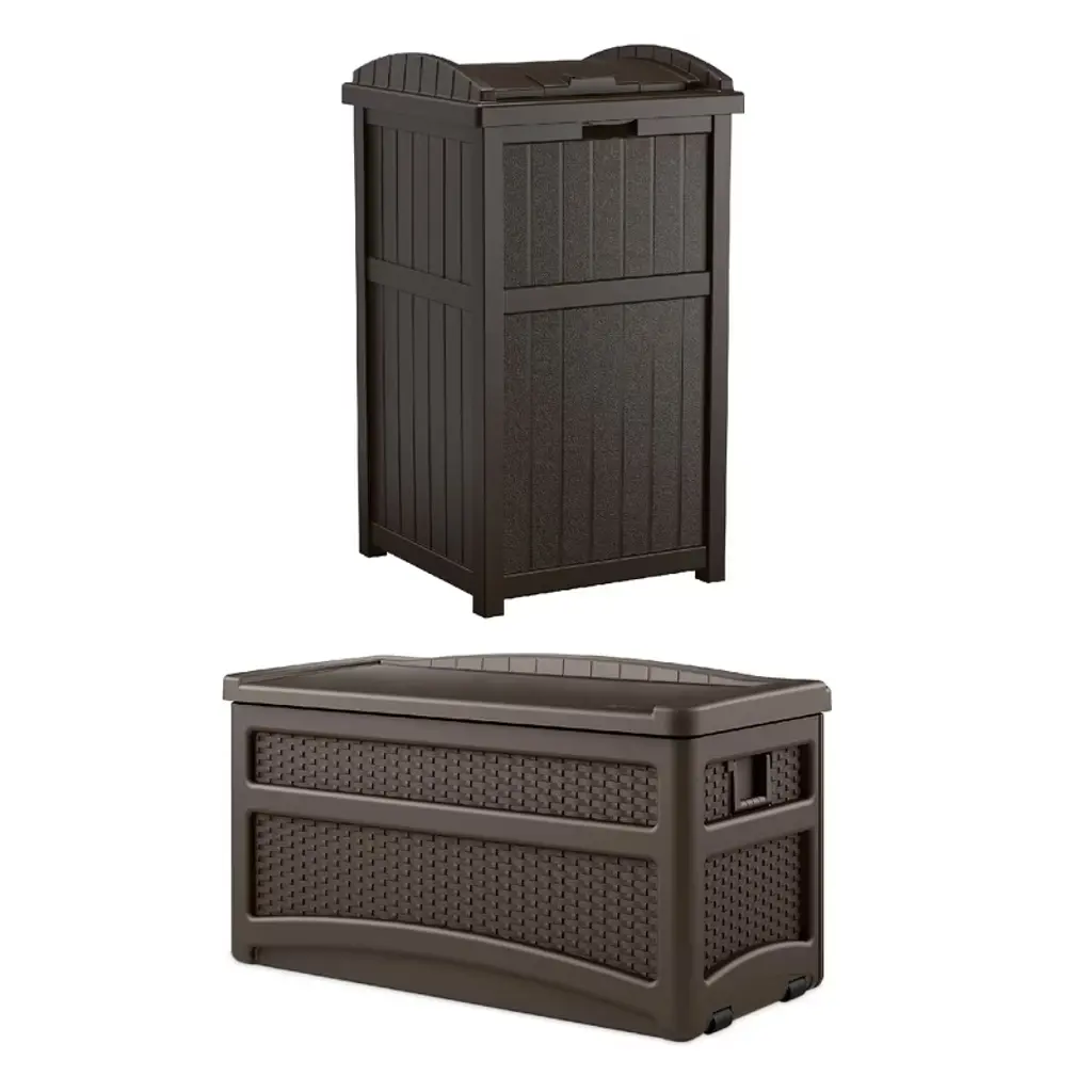 This outdoor garbage bin has a large capacity and is perfect for use in parks, gardens, and other public spaces. Durable material: Polypropylene (PP) is a popular plastic that is also one of the most used materials in outdoor furniture. It's lightweight, tough, and built to withstand impact. Also, this garden waste bin is weather-proof and UV proof, and easy to maintain. Imitation wood texture design: This outdoor bin features an imitation wood texture design that adds a touch of natural charm to your outdoor living space.Large capacity: The outdoor waste bin has a large capacity of up to 21.1 gal, so you can easily store all your outdoor waste. Lid enclosure: This garden bin comes with a lid to prevent pesky creatures from getting into the bin while preventing odors from escaping.