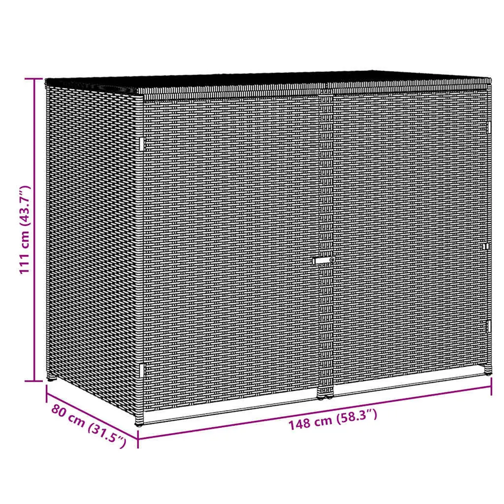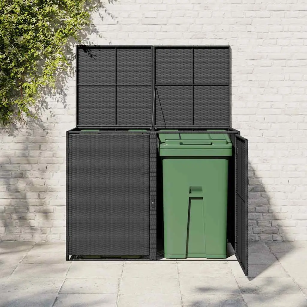 Vidaxl Trash Can Shed Black Pe Rattan, Powder-Coated Steel Large Durable