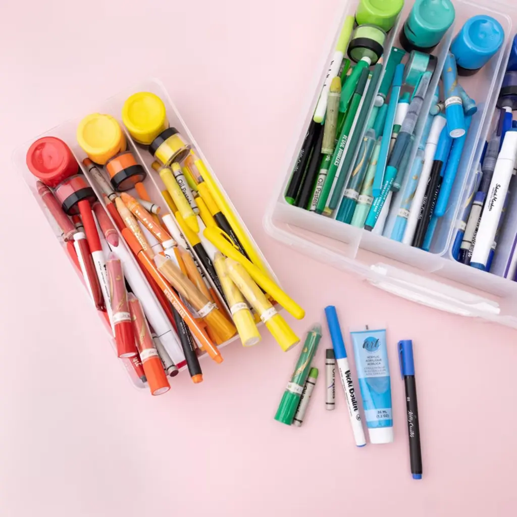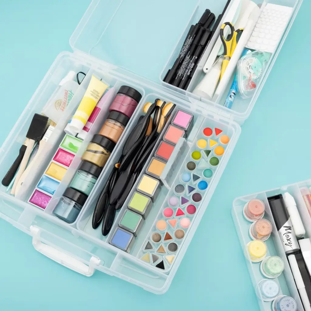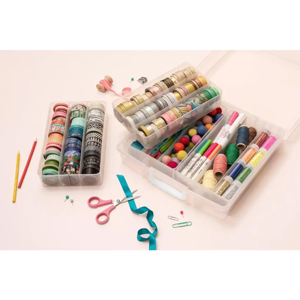 Keep all your favorite washi tape designs in one spot with the Washi Storage Bin by We R Memory Keepers! This awesome organizer can hold over 200 rolls of standard size washi tape rolls, and can be stored in the smallest of crafting spaces. The four removable trays make organizing and stashing a cinch! The Washi Storage Bin is also perfect for when you're on the go or planning a crafting weekend away. This package includes 1 Washi Tape Storage Bin. Imported.
