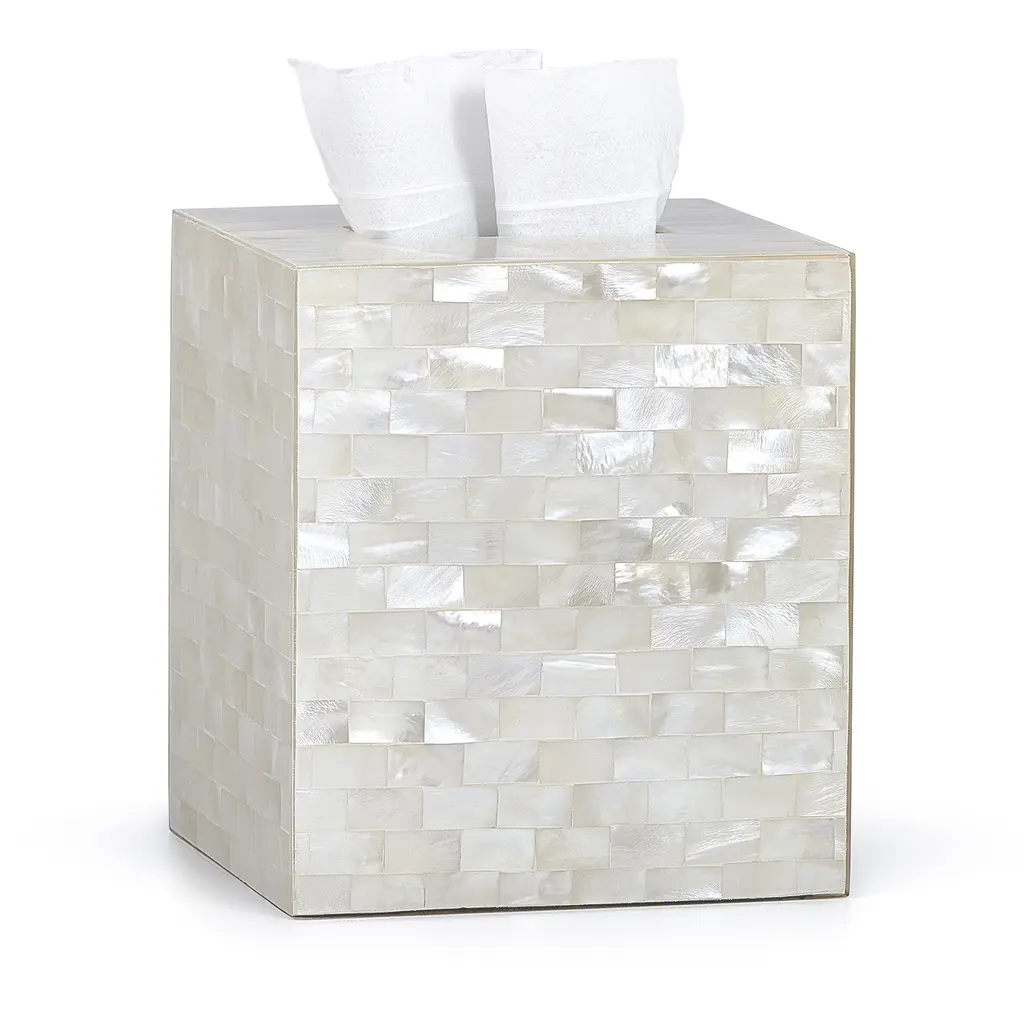 Rich pearl hammershell creates a stunning collection of bath accessories. Each piece reveals hints of pink and gold, for a sparkling touch to your bathroom decor.