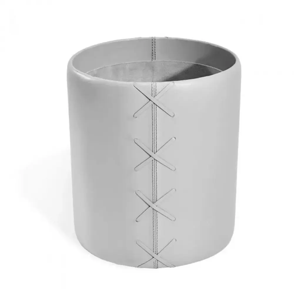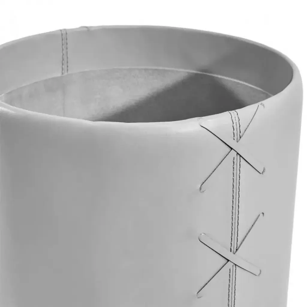 The light grey leather Xavier Wastebasket boasts eye-catching complementary stitching and officially proves that style and necessity can coexist fabulously. Genuine leather is a natural material. Variations in coloration and pattern are to be expected and add to the uniqueness and charm of each piece.