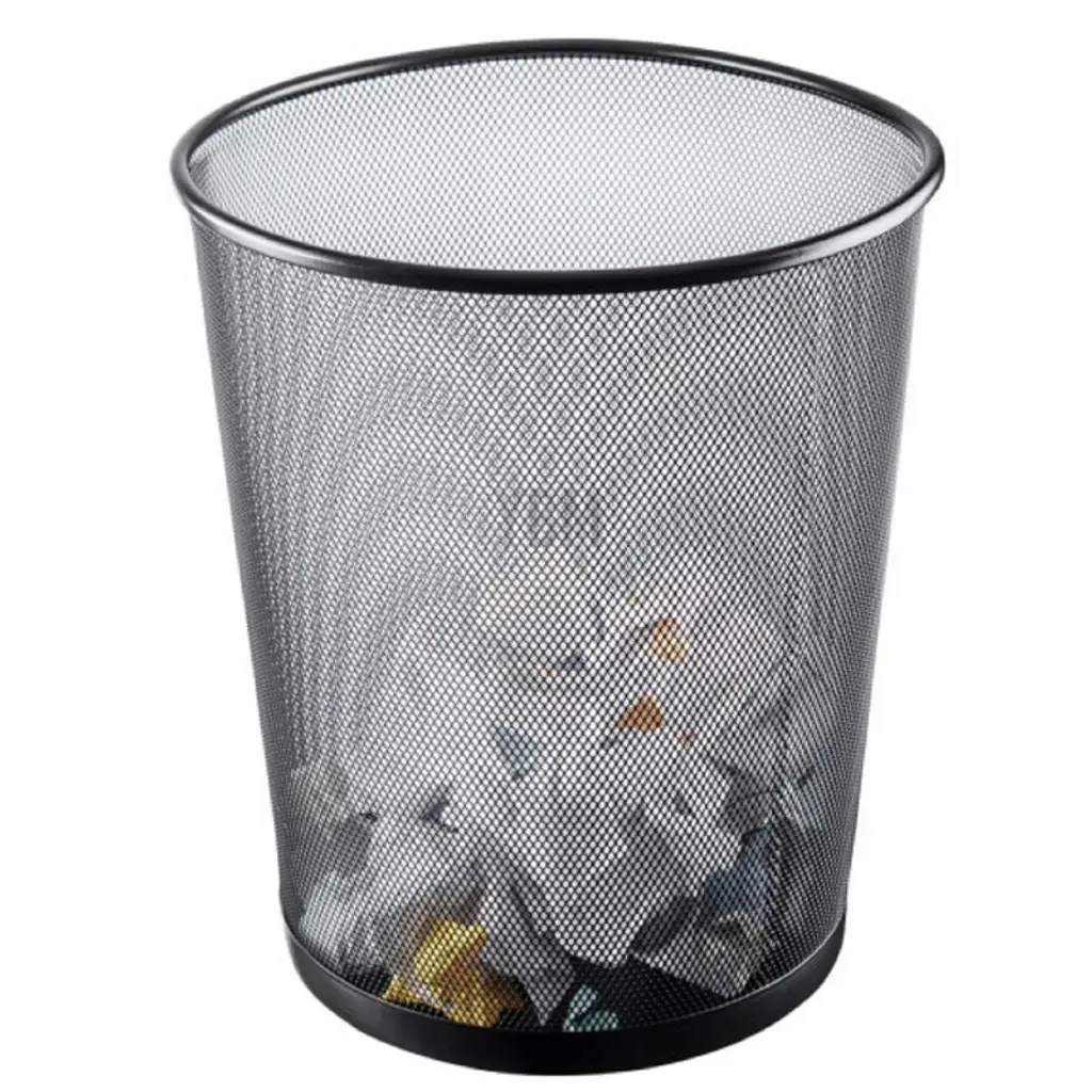 YBM Home Wastebasket is an efficient designer solution for deskside disposal Perfect for any room Keep things tidy and clean with the Mesh Wire Wastebasket. These baskets are perfect for: Office, Kitchen, Bathroom, Bedroom/Dorm Room, Etc. Sturdy metal construction Constructed from a steel mesh casing in a black or silver epoxy finish with a reinforced top rim and solid steel base. The steel mesh construction provides for a breathable wastebasket that helps prevent the build-up of moisture. Tidy up around the house with Ybmhome Round Mesh Wastebasket Recycling Bin Each basket is constructed from steel wire mesh with a reinforced rim and base. The ventilated mesh design prevents moisture from accumulating and helps to keep the basket dry and sanitary. It is easy to clean with soap and damp cloth; wipe away excess water and let air dry. Use them your way Furnish every room of your home with a wastebasket; outfit a new office with a waste bin at every desk; Separate recyclables from trash with multiple baskets. The Round Waste Basket is Available in 2 color options: Black and Silver Ybm Home Round Mesh Waste Bin Measurements are as Follows: Height: 13.5 inch; Upper Width 11.5 inch; Lpwer Width 9.5 Inch; Capacity 4.75 Gallon