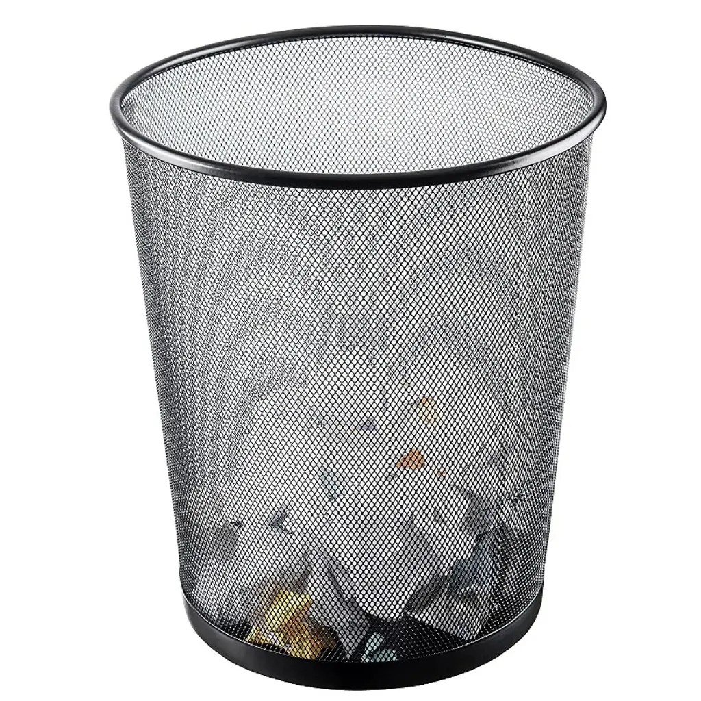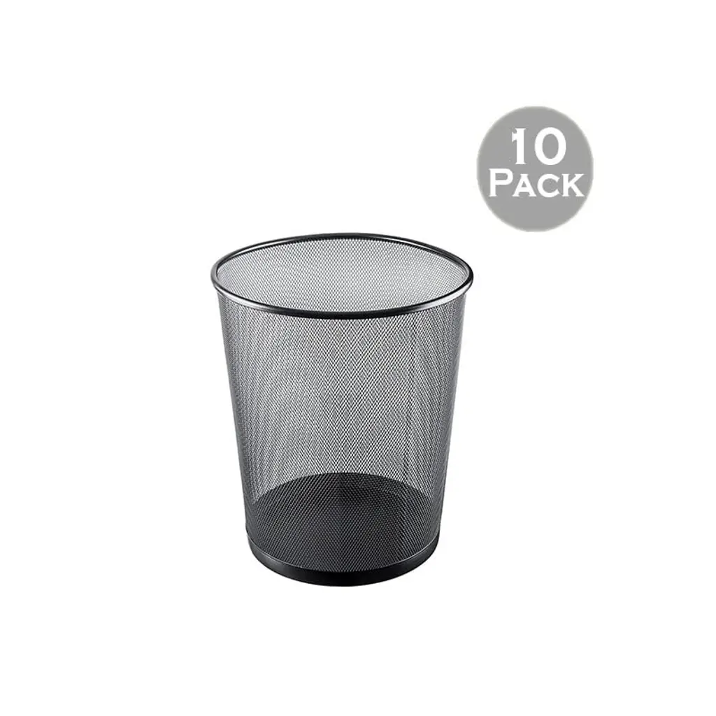 Ybm Home 4.75 Gallon Black Steel Mesh Round Open Top Waste Basket Trash Can (2484),10-pack