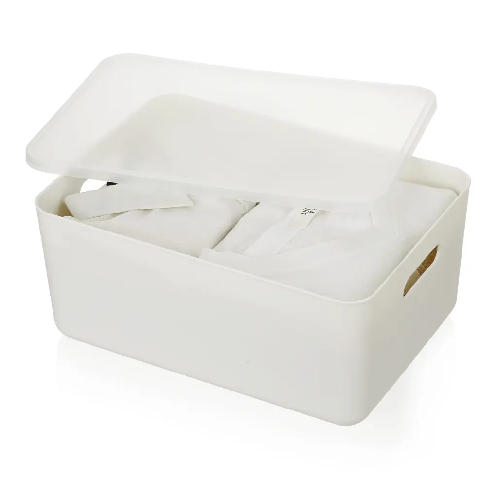 Add harmony and organization in your living space with these practical storage binsCompartmentalize EverythingCheering up your space is our ultimate goal! Storage bins can turn a messy room into an organized regime. From small household items to office supplies, our containers can help you keep everything nice and contained.Unsurpassed Quality and Lasting DurabilityMade of the highest quality plastic material, our BPA-free storage bins are sturdy to resist wear n' tear. They are sturdier than other containers and offer practical storage to keep specific places in your home clutter-free. Stack as you fill them up with things.Three Available SizesWe offer the following sizes- Small: Upper Length 10.25 in. x 7.25 in. Upper Width x 6.25 in. Height. Lower Length 9.25 in. Lower Width 6.50 in.- Medium: Upper Length 14.25 in. x 10.25 in. Upper Width x 6.25 in. Height. Lower Length 13.5 in. Lower Width 9.25 in.- Large: Upper Length 14.25 in. x 10.25 in. Upper Width x 9.5 in. Height. Lower Length 13.25 in. Lower Width 9 in.