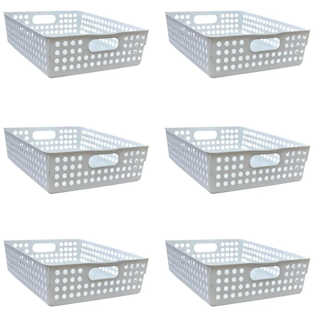 Ybm Home White Plastic Storage Pantry Bin, Open Basket With Handle, Multipurpose - Large - 12-Pack