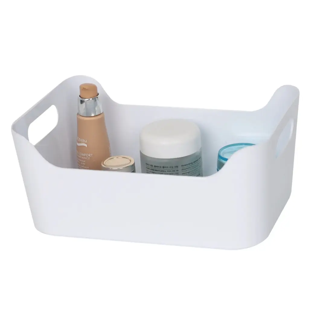 Ybm Home White Plastic Storage Pantry Bin, Open Basket With Handle, Multipurpose - Large - 2-Pack