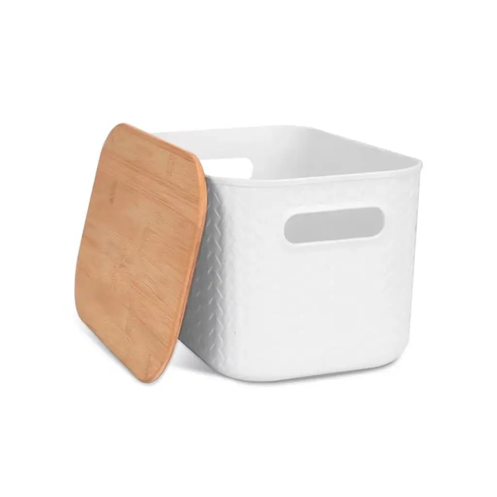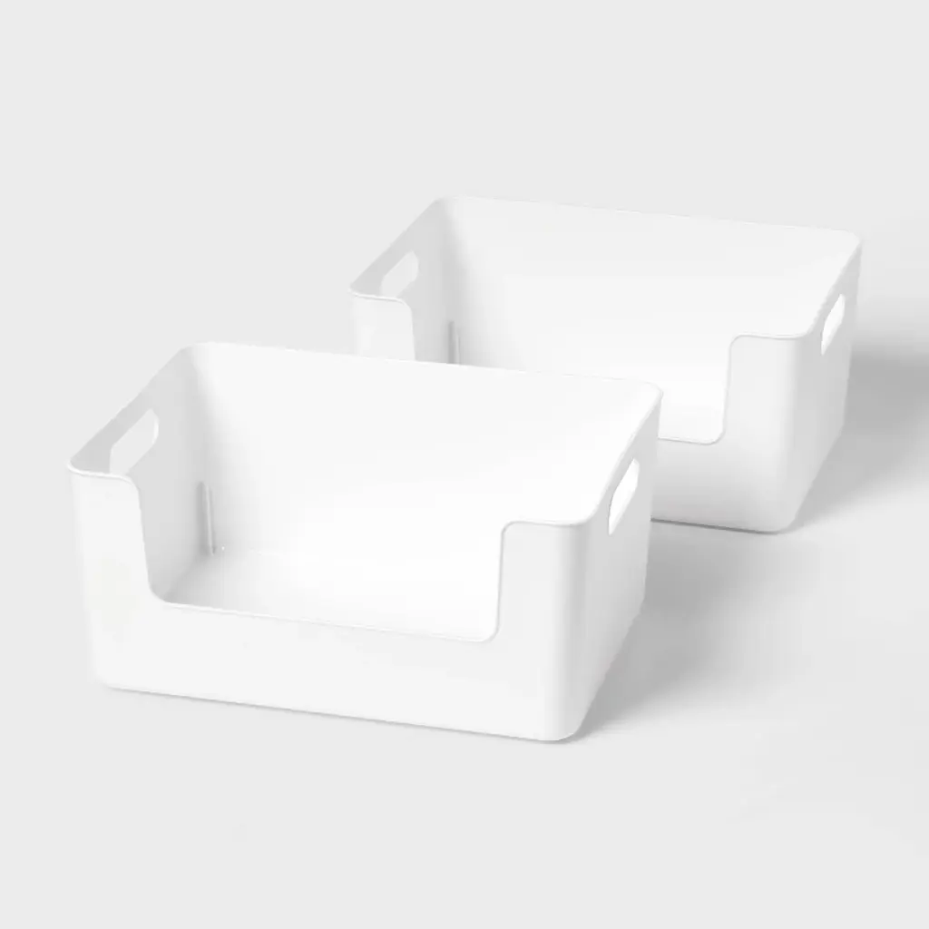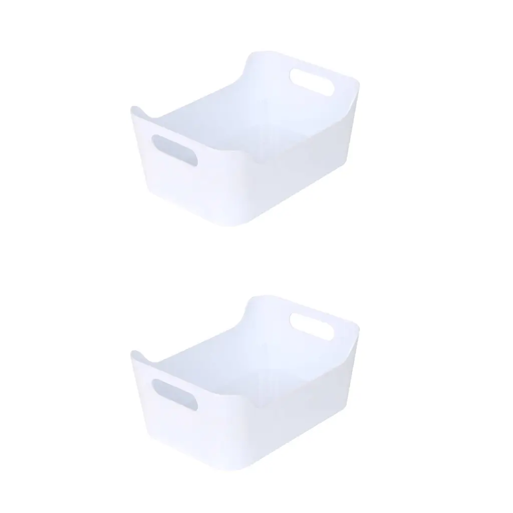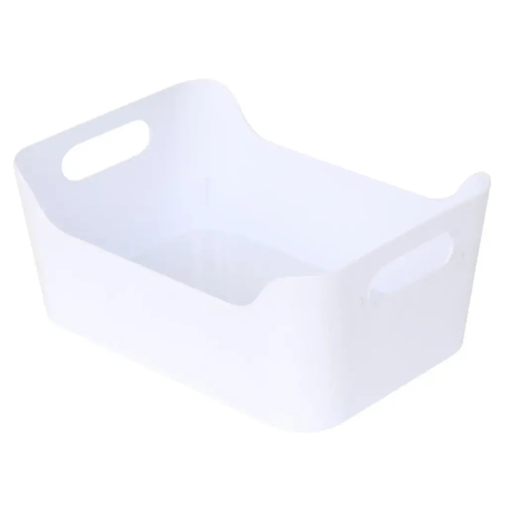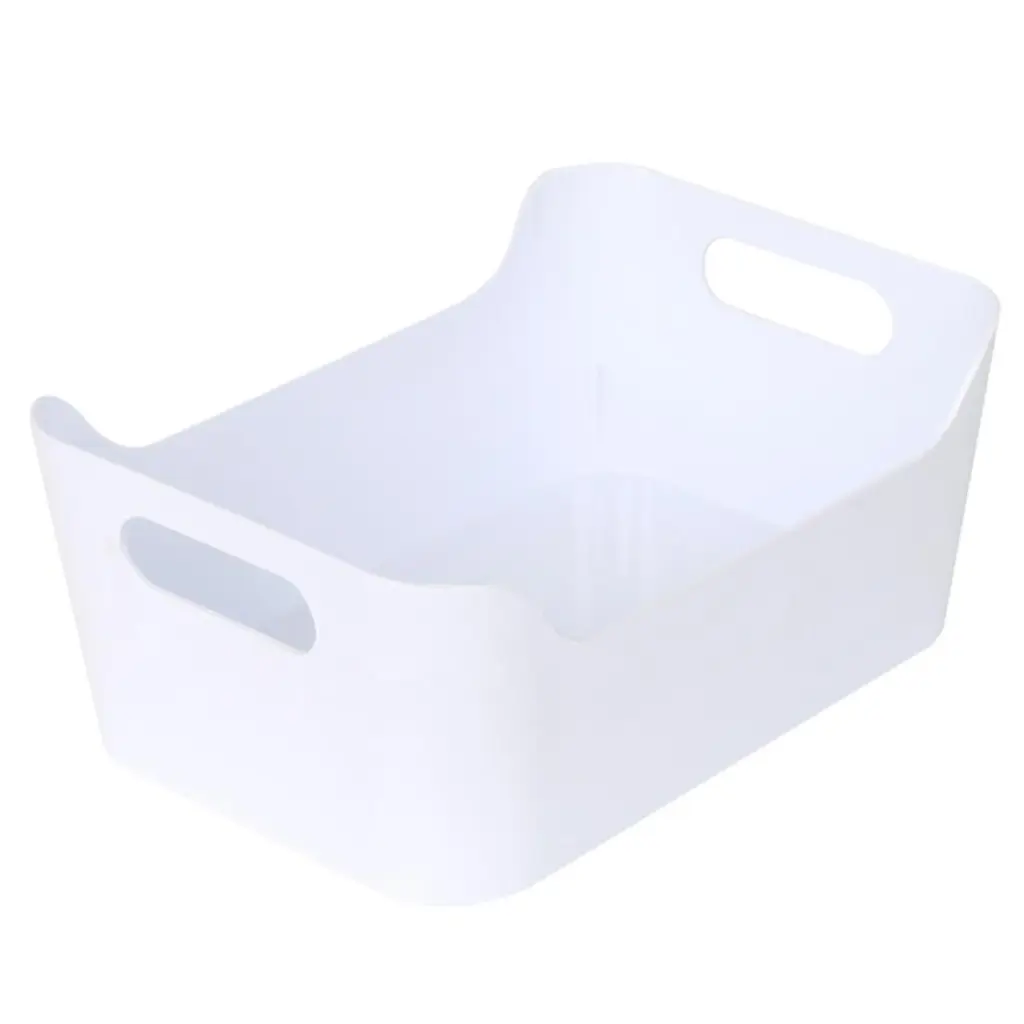 Ybm Home White Plastic Storage Pantry Bin, Open Basket With Handle, Multipurpose - Small - 1-Pack