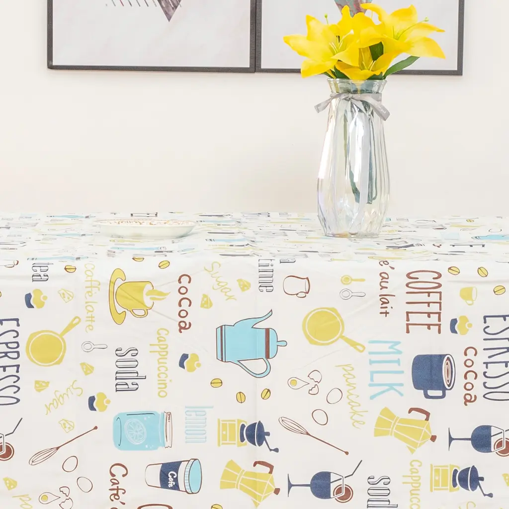 Step into a world where every meal is a masterpiece, courtesy of our Printed Tablecloth. This isn't just a table covering; it's a culinary canvas adorned with the whimsy of tableware elements, turning your dining experience into a visual and tactile delight.For those who can't start the day without their favorite brew, this coffee-inspired tablecloth is a must-have! Featuring a playful mix of coffee cups, cappuccinos, cocoa, and milk patterns, it's the perfect addition to your kitchen or dining space. Whether you're enjoying a morning espresso or hosting a brunch with friends, this vibrant design brings an energizing and fun atmosphere to any occasion. Made from durable, easy-care fabric, it's designed for everyday use, making your coffee moments even more delightful. Add some personality and warmth to your table with this cheerful, coffee-themed tablecloth! Unveiling Culinary Artistry: Dive into a tableware wonderland with our Printed Tablecloth. From forks and knives to plates and glasses, each element is intricately designed, creating a tapestry of culinary artistry that transforms your dining space.Functional Elegance, Effortless Charm: Crafted from high-quality , this tablecloth isn't just a feast for the eyes; it's a practical addition to your dining repertoire. Spills and messes become a thing of the past, allowing you to focus on the joy of sharing a meal with loved ones.Every Detail Tells a Story: Celebrate the finer details of dining with our tableware-inspired design. Every fork, knife, and plate weaves a story of culinary craftsmanship, turning each meal into a conversation starter and an immersive experience.Versatile Sizing, Perfect Fit: Whether you're hosting an intimate dinner or a grand feast, our tablecloth comes in versatile sizes to fit any table. Choose the perfect fit to showcase the magic of tableware and set the stage for unforgettable dining moments.Dine in Style, Stress-Free: Embrace the joy of dining without the worry of cleanup. Our tablecloth is not just a visual spectacle; it's a practical choice for easy maintenance. Wipe away spills effortlessly, allowing you to savor your meals stress-free.Perfect for Every Occasion: Whether it's a casual family gathering or a formal dinner party, our tablecloth with tableware elements adds a touch of charm to every occasion. Elevate your dining experience and make every meal a celebration of style and creativity.Artful Gift Option: Searching for a unique and thoughtful gift? Surprise your loved ones with the gift of culinary elegance. Our Printed Tablecloth is an artful and practical present that brings a touch of creativity to any dining space.Table Setting Upgrade: This isn't just a tablecloth; it's a statement piece. Elevate your dining space with a touch of whimsy and turn every meal into a unique celebration of culinary style and design. Order now and let the artistry of tableware adorn your table!