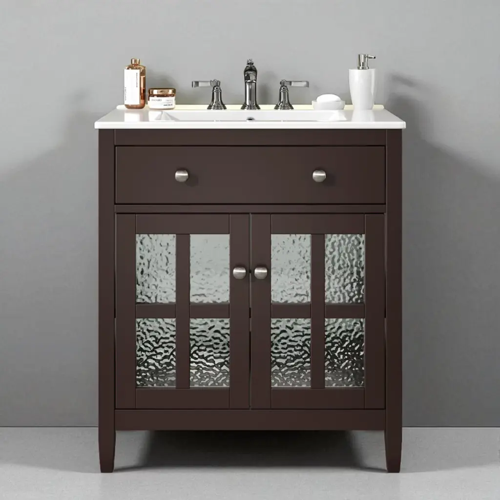 30" Bathroom Vanity With Sink Aa??freestanding Cabinet With Ceramic Basin, Tip-out Tray, Adjustable Shelf, Solid Wood Legs, Soft Close Hinges