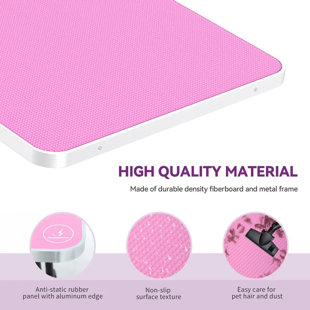36" Foldable Dog Grooming Table With Adjustable Arm, Non-Slip Desktop, Storage Tray& Noose, Pink - Pink