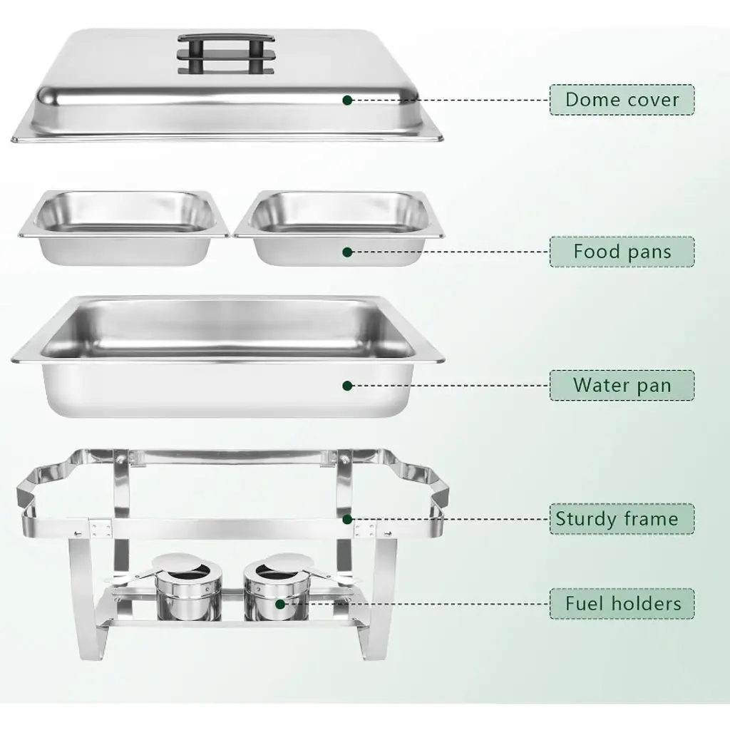 8Qt Double Compartment Rectangular Food Warmer, Stainless Steel Portable Buffet Food Warmer Tray, Stackable For Buffets, Events And Parties, 2Pcs