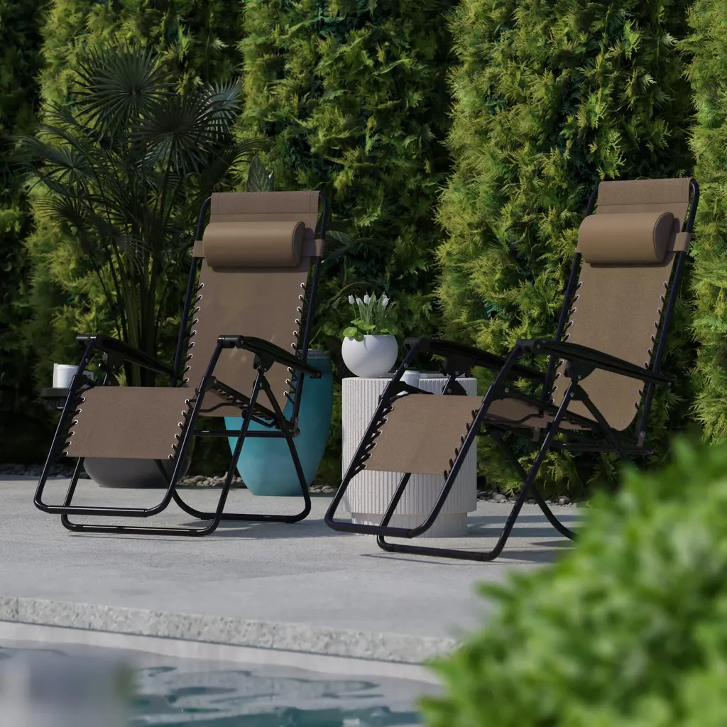 Adjustable Folding Mesh Zero Gravity Reclining Lounge Chair With Pillow And Cup Holder Tray, Set Of 2