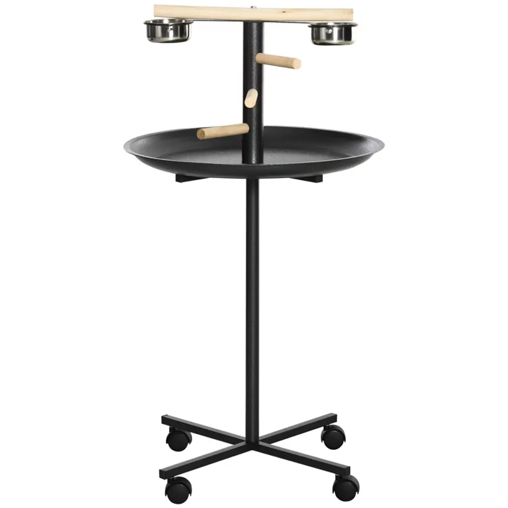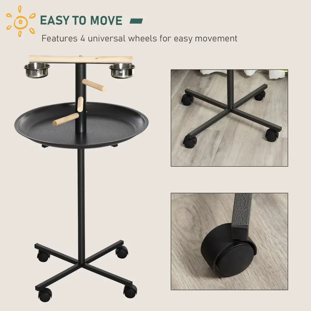 Akoasm Portable Parrot Bird Stand & Bird House With Stainless Steel Feed Bowls, Wheels And Tray-grey