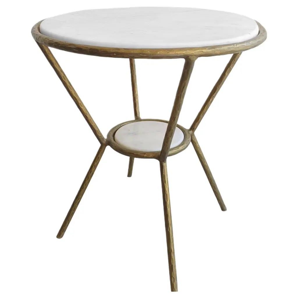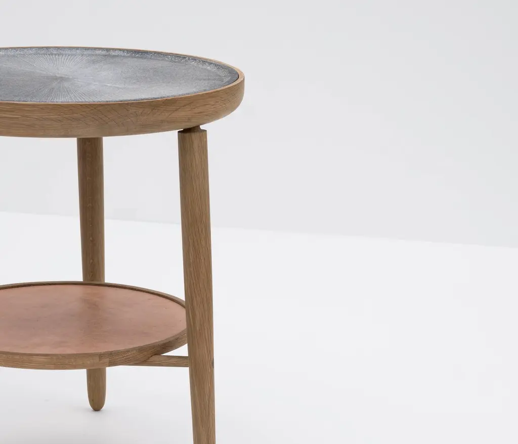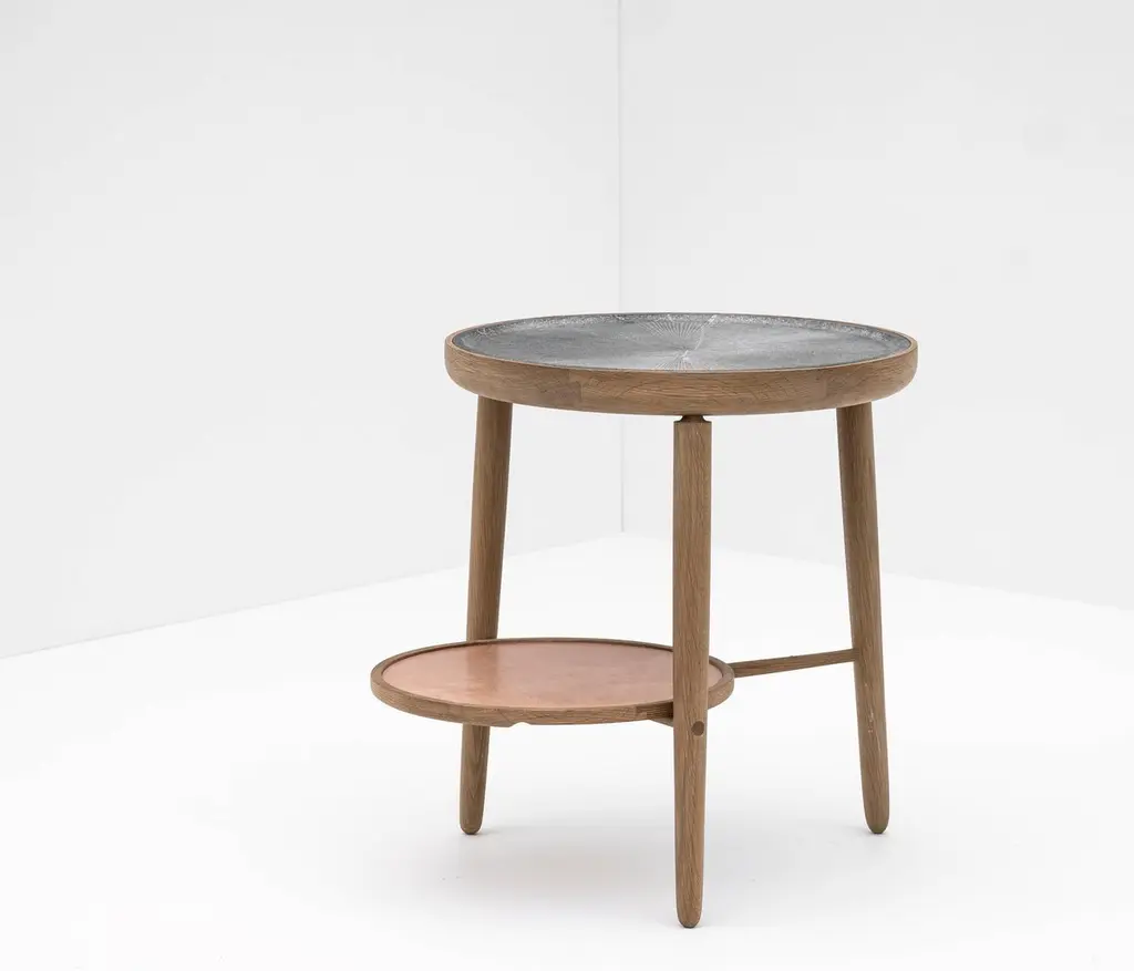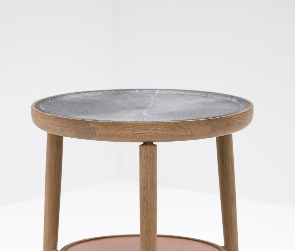 Baré Side Table, White Oak Base With Carved Soapstone Surface And Leather Tray