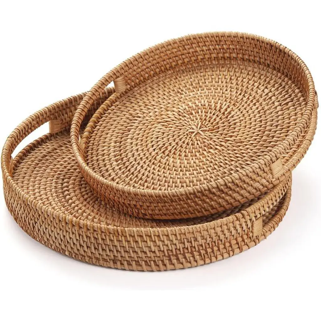 This beautifully handcrafted 11.8-inch round rattan tray combines artisanal elegance with practical functionality. Made from 100% natural rattan using traditional weaving techniques, this compact yet versatile tray (11.8" diameter x 2.4"H) features convenient built-in handles for easy carrying. The natural earthy tone and handwoven texture bring organic warmth to any space while providing a perfect surface for serving, organizing, or decorative displays. Ideal for coffee tables, bedside stands, or kitchen counters, this tray offers multiple functions¡ªfrom serving beverages and snacks to organizing daily essentials. The sturdy woven construction ensures durability while the lightweight design allows easy movement between rooms. Whether used for entertaining or keeping small items organized, this handcrafted piece adds rustic charm and functionality to your home decor. Product Selling Points: Compact 11.8-Inch Circular Design With 11.8" diameter and 2.4" depth, this perfectly sized tray fits comfortably on smaller surfaces while providing ample space for serving or organizing essentials. 100% Natural Handwoven Rattan Crafted from premium natural rattan using traditional weaving techniques, this tray showcases authentic craftsmanship and unique texture that enhances its rustic appeal. Convenient Built-In Handles Features integrated handles on both sides for easy carrying and transport, making it simple to move from room to room for various uses. Multi-Functional Serving & Organization Ideal as a service tray for drinks and snacks, coffee table organizer, or decorative accent. Perfect for keys, mail, remotes, or dining essentials. Easy Maintenance & Cleaning The tightly woven surface resists debris and can be quickly wiped clean with a damp cloth, maintaining its natural beauty with minimal effort.