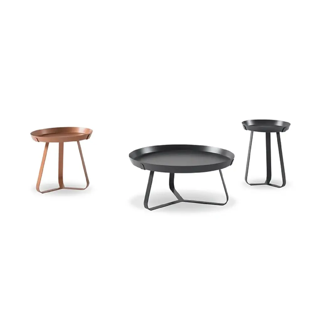 An expressive onomatopoeia that recalls the sounds of cicadas: this is the image that inspired the line of coffee tables by Bonaldo. The geometric, slender and rounded design of the structure makes them lightweight, while a game of balances between sharp corners and rounded angles supports a practical removable tray, an element that can be further embellished with an elegant ceramic top. In the single material version, the effect is of essential elegance and functionality; in the version with the ceramic top, the contrast between the two materials adds further character. Frinfri modern round wooden coffee tables are available in three different heights and all models are available in multiple colour variants, thus making it possible to choose the one that is most suitable to individual stylistic needs. The Frinfri modern wood coffee table variant features a wooden top and is available in two sizes (high and medium).