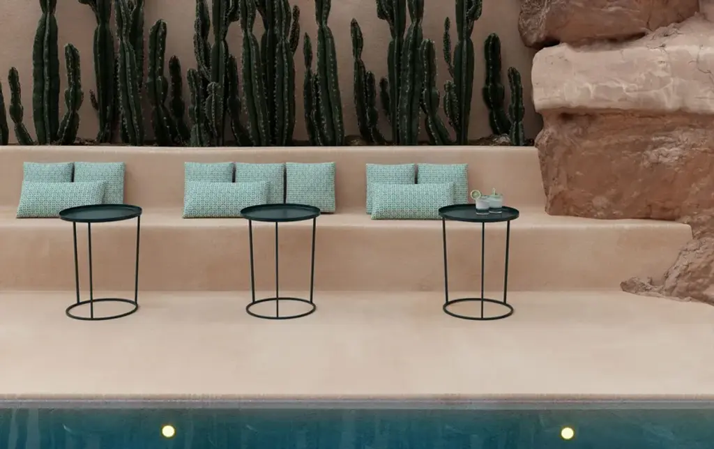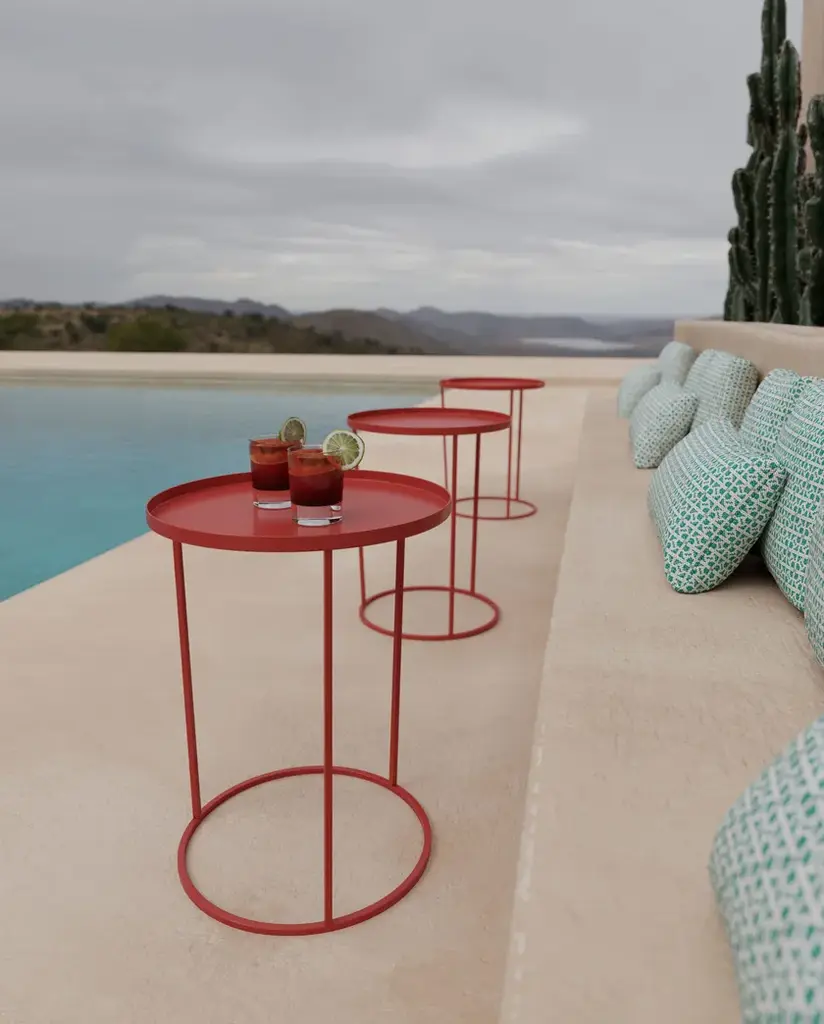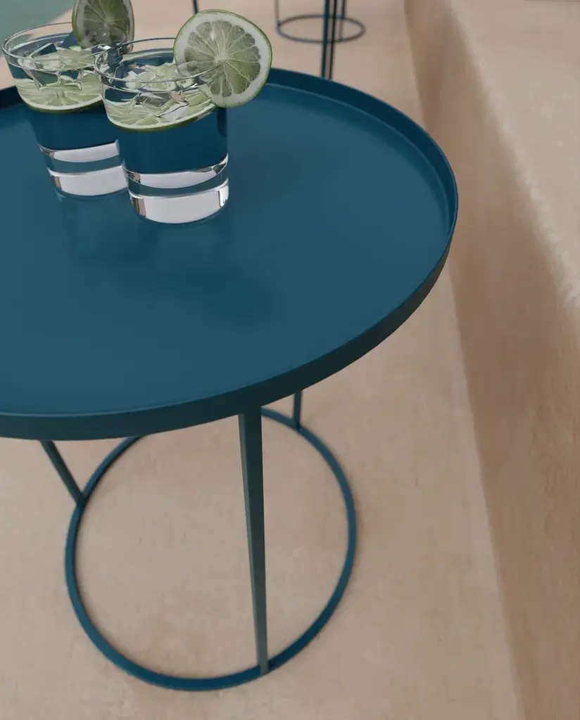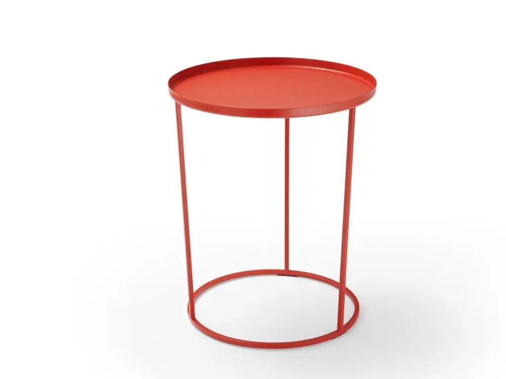 Costance Vassoio is a round coffee table with tray, for outdoor use, perfect for residential and contract use. The steel structure (1 cm square tubing) creates a contemporary design in which the three legs from different effects and perspectives. You can choose it in the 18 RAL colors of the Color Chart. Thanks to this variety of colours, the coffee table can take on a playful or serious look, making it suitable for different styles and environments. In particular, it fits very well in the pool areas, terraces, gazebo, gardens and spas.Outdoor use is guaranteed thanks to a galvanising process before painting, which gives the product a high resistance to exposure to atmospheric agents. Costance Vassoio is also available for indoor use.Material:SteelFinishing:matt finishingMaintenance suggestions:Use only clean water, with slight additives of neutral washing agents (pH 7), is to be used with the aid of soft, non-abrasive cloths, rags or industrial cotton. Strong rubbing is not to be undertaken.Technical characteristics:Thickness: 10 mm for the legs in square tubingAssembly not required.