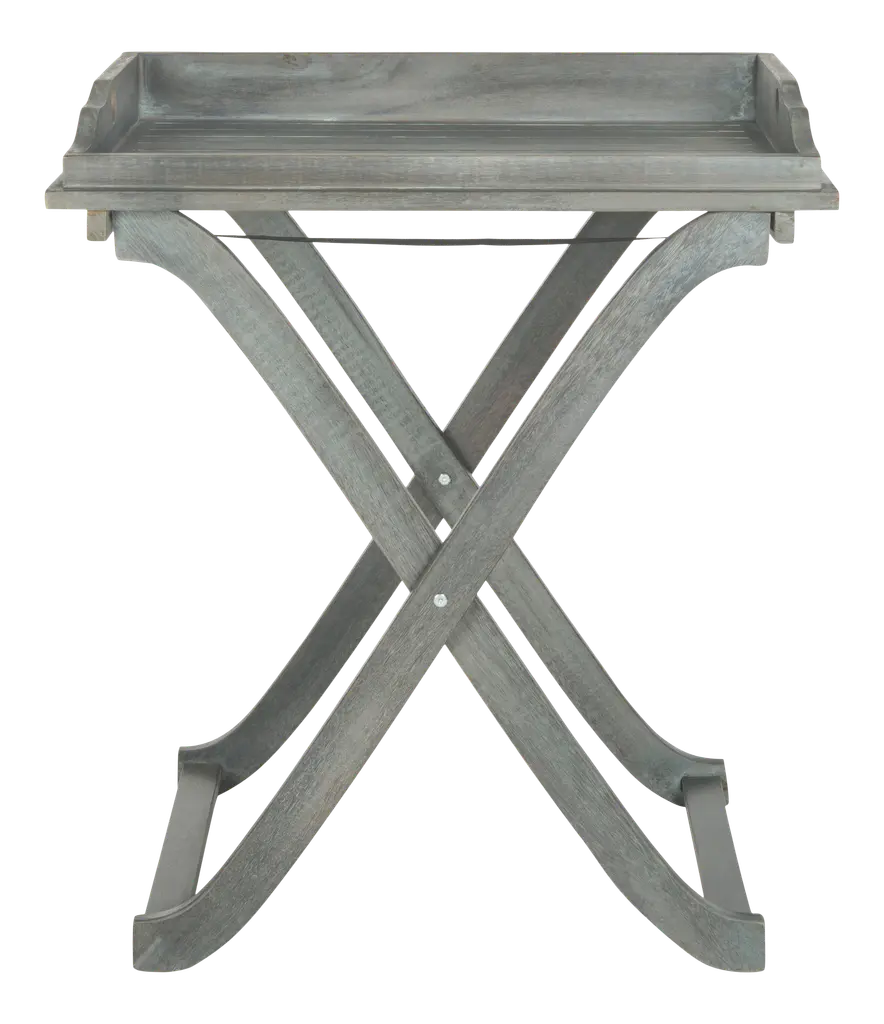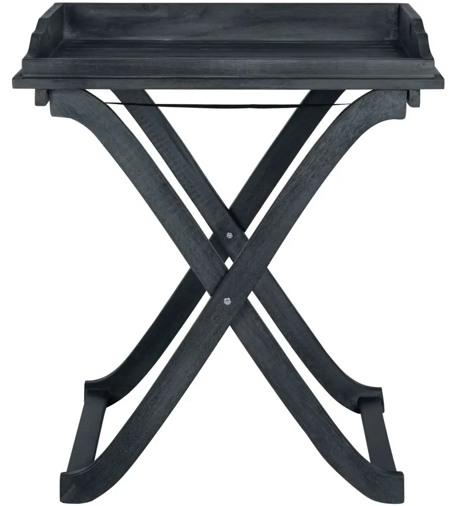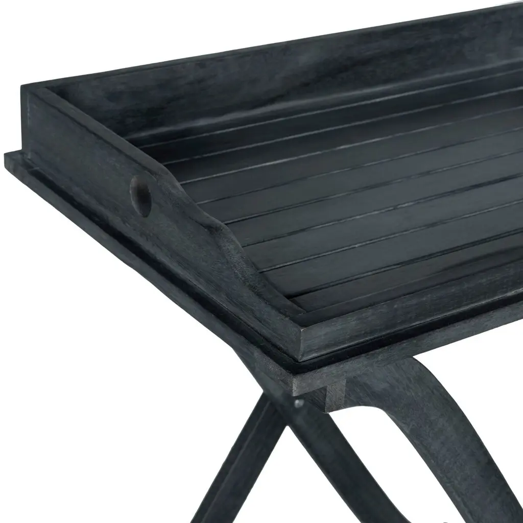 A smart and stylish addition to your favorite outdoor space, this side table is crafted of acacia with a dark slate-gray finish and conveniently removable top that can lock into the base.
