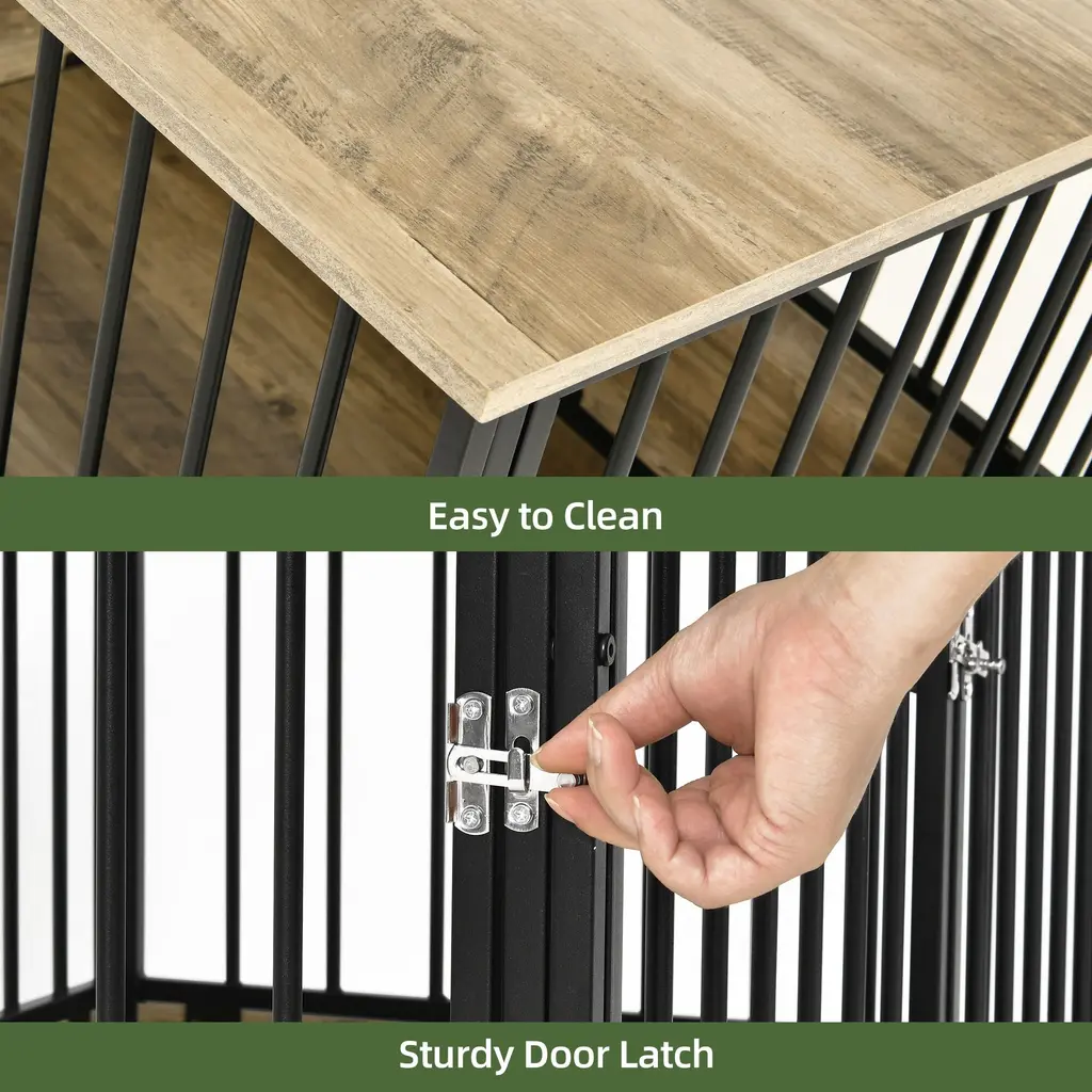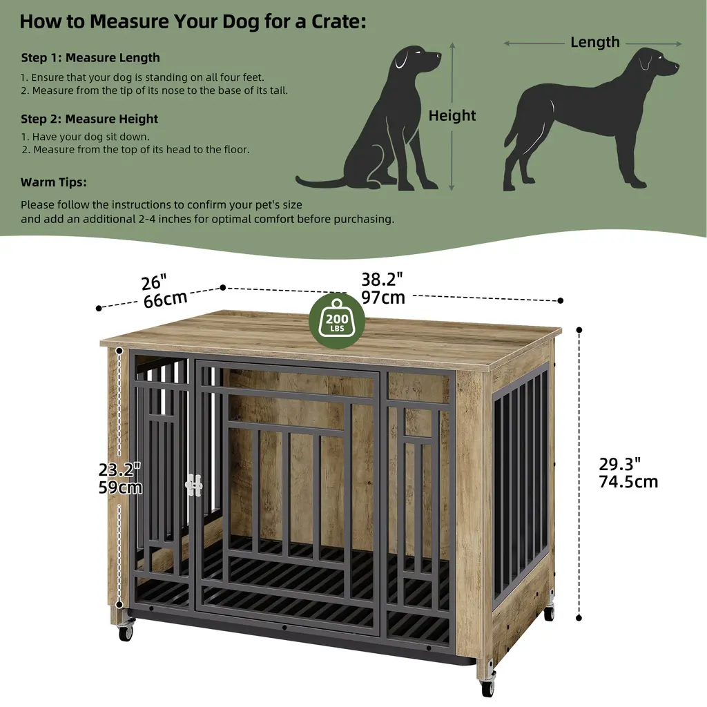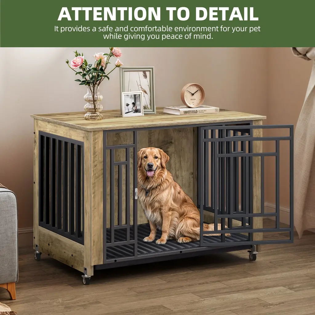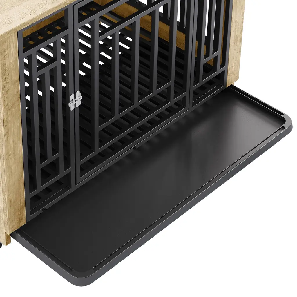 Upgrade your pet's living quarters with our Heavy Duty Indestructible Dog Crate, designed to meet the demands of modern pet ownership. This multifunctional crate serves as a secure sanctuary for your dog and a stylish end table for your home. Crafted from 0.6-inch thick steel tubes, it's built to last, even for powerful and aggressive dogs. The multi-layered, non-toxic coating ensures safety, while the elevated floor and removable tray make cleaning a breeze. With 360° lockable wheels, this crate is a breeze to move, and the sturdy construction keeps it stable. Features: Product Information: