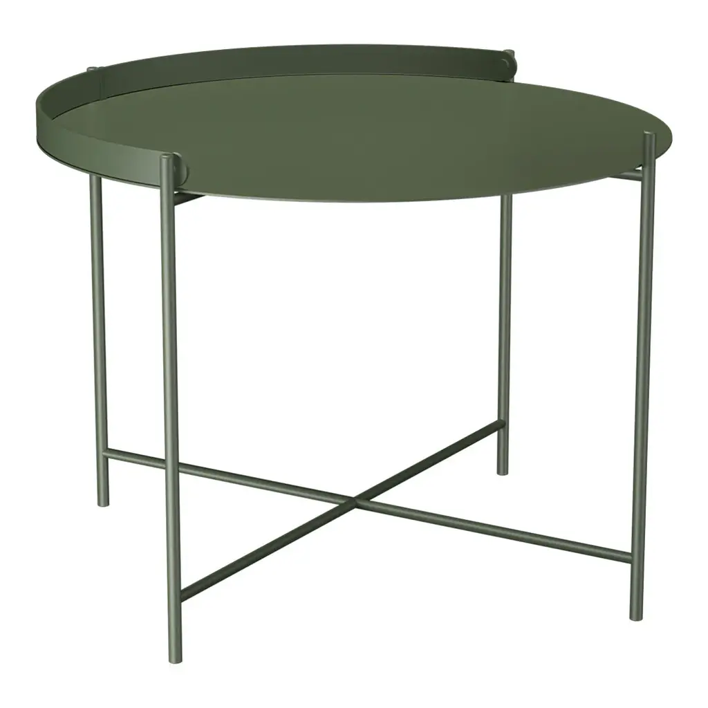 EDGE tray table is suitable for both indoor and outdoor use. The half ring shaped handle makes it easy to move the table between the living room and the garden, and when laid down it functions as a table edge making sure everything stays in place.