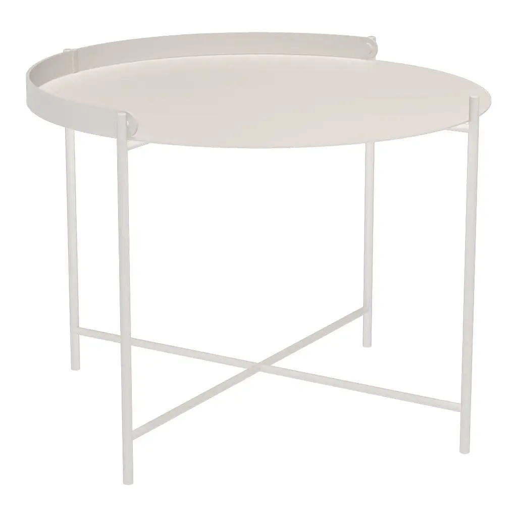 EDGE tray table is suitable for both indoor and outdoor use. The half ring shaped handle makes it easy to move the table between the living room and the garden, and when laid down it functions as a table edge making sure everything stays in place.