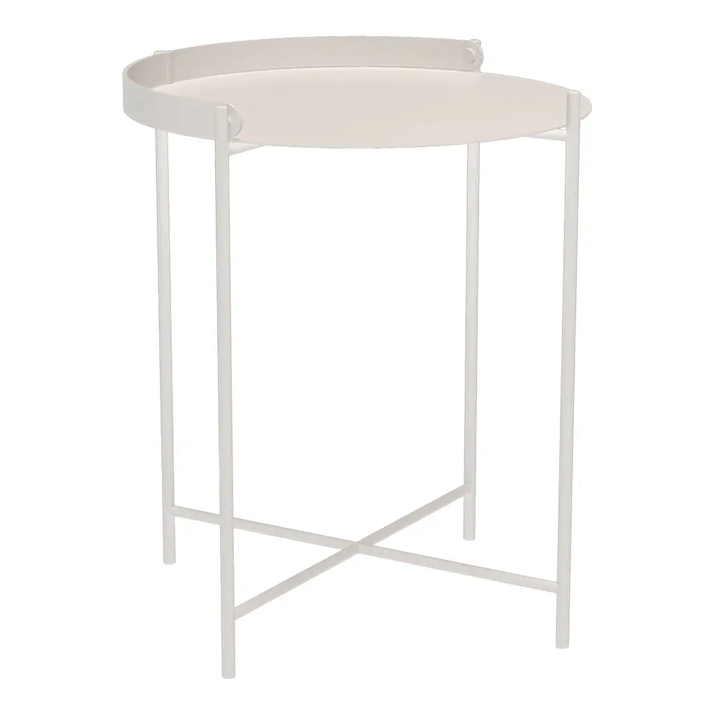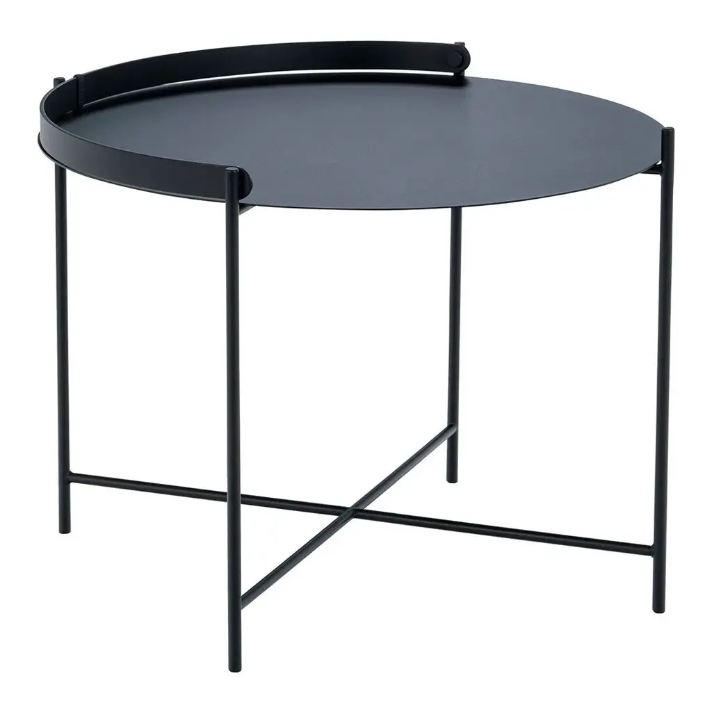 EDGE tray table is suitable for both indoor and outdoor use. The half ring shaped handle makes it easy to move the table between the living room and the garden, and when laid down it functions as a table edge making sure everything stays in place.