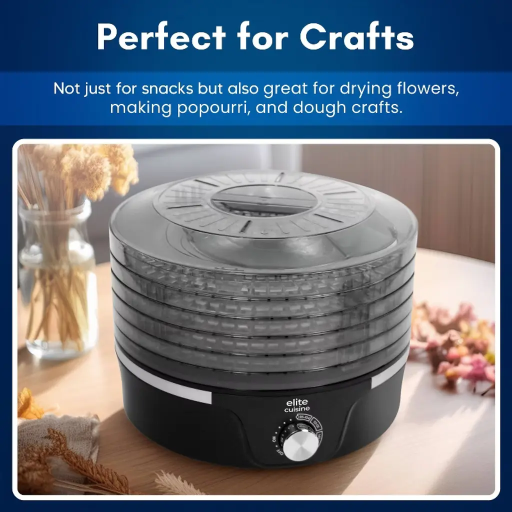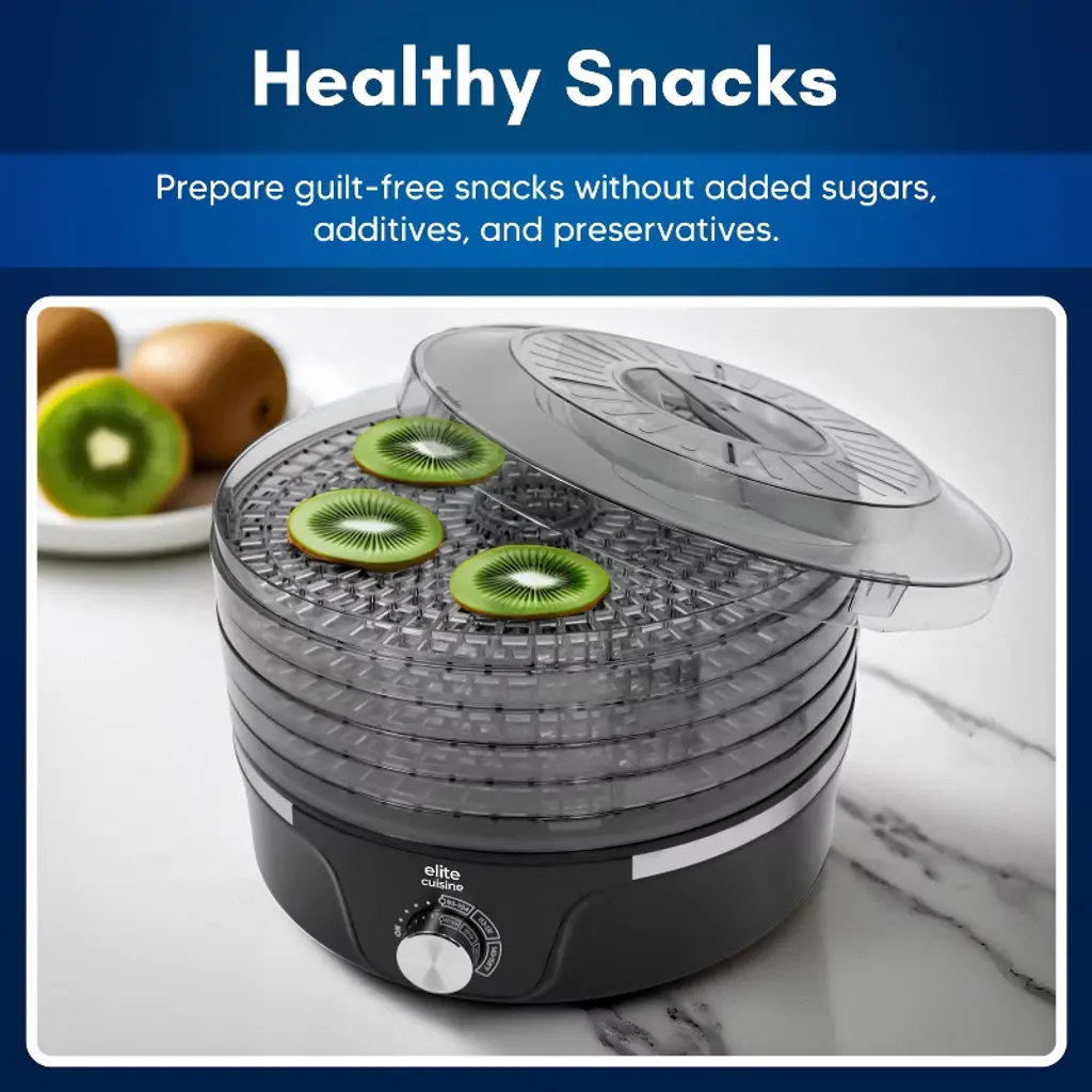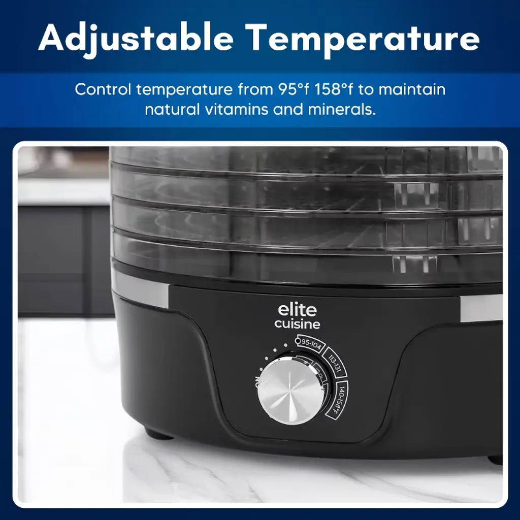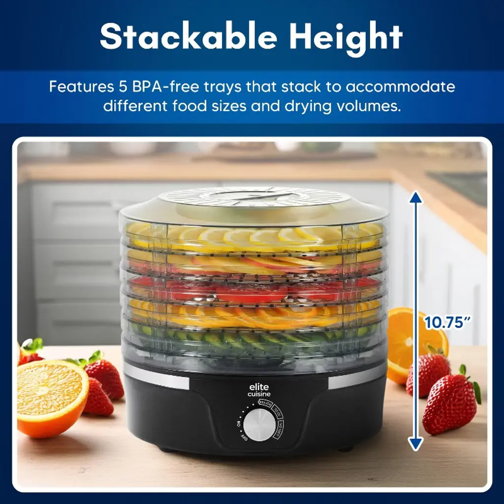 Elite Cuisine Food Dehydrator With Adjustable Temperature Dial And 5 Trays