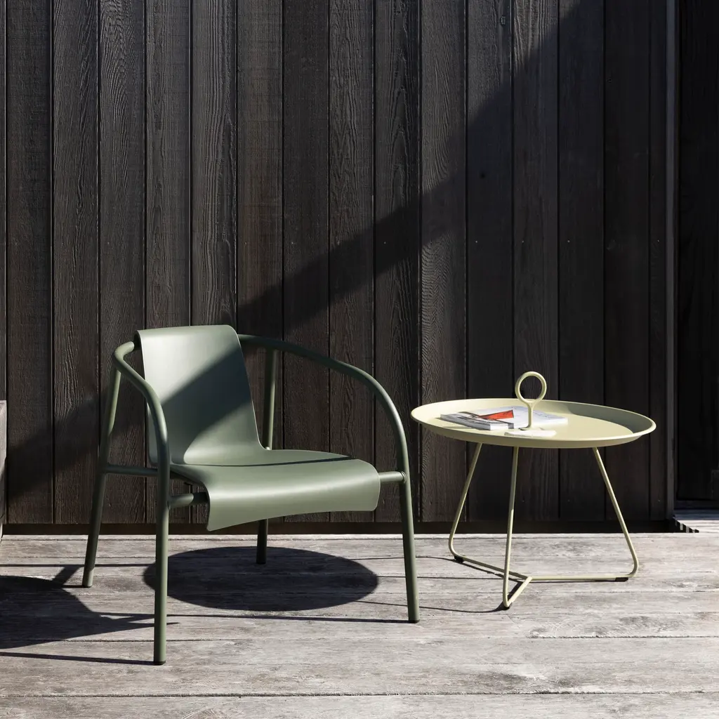 Designed to be used in many different ways, the Eyelet Indoor/Outdoor Tray Table from HOUE is effortless, chic, and endlessly versatile. Perfect for use both indoors and out, in pairs and on their own, this side table is lightweight and features a special drain system, which keeps the tray free from water after it rains. Use the convenient carrying ring to move about your space to accent rocking chairs, lounge chairs, sofas and more.Highlights