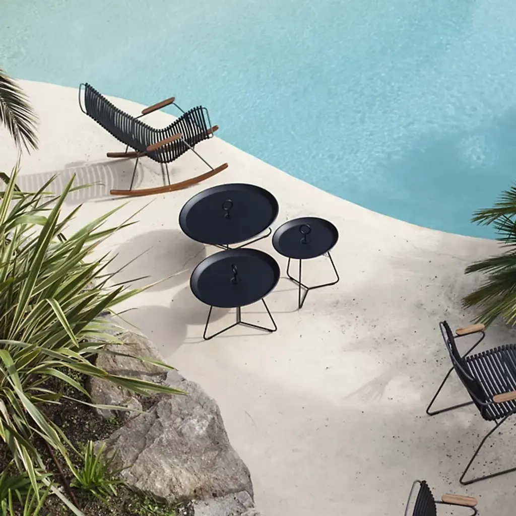 The Eyelet Outdoor Tray Table from Houe is a visually striking and versatile side table designed for various applications, whether used individually or in an eclectic combination. Its mobility ensures easy placement wherever needed, both indoors and outdoors. The Eyelet Tray Table features a unique drain system, preventing water accumulation after rain showers and maintaining the pristine condition of the tray. Elevate your space with this graphic and functional addition that seamlessly combines style and practicality.