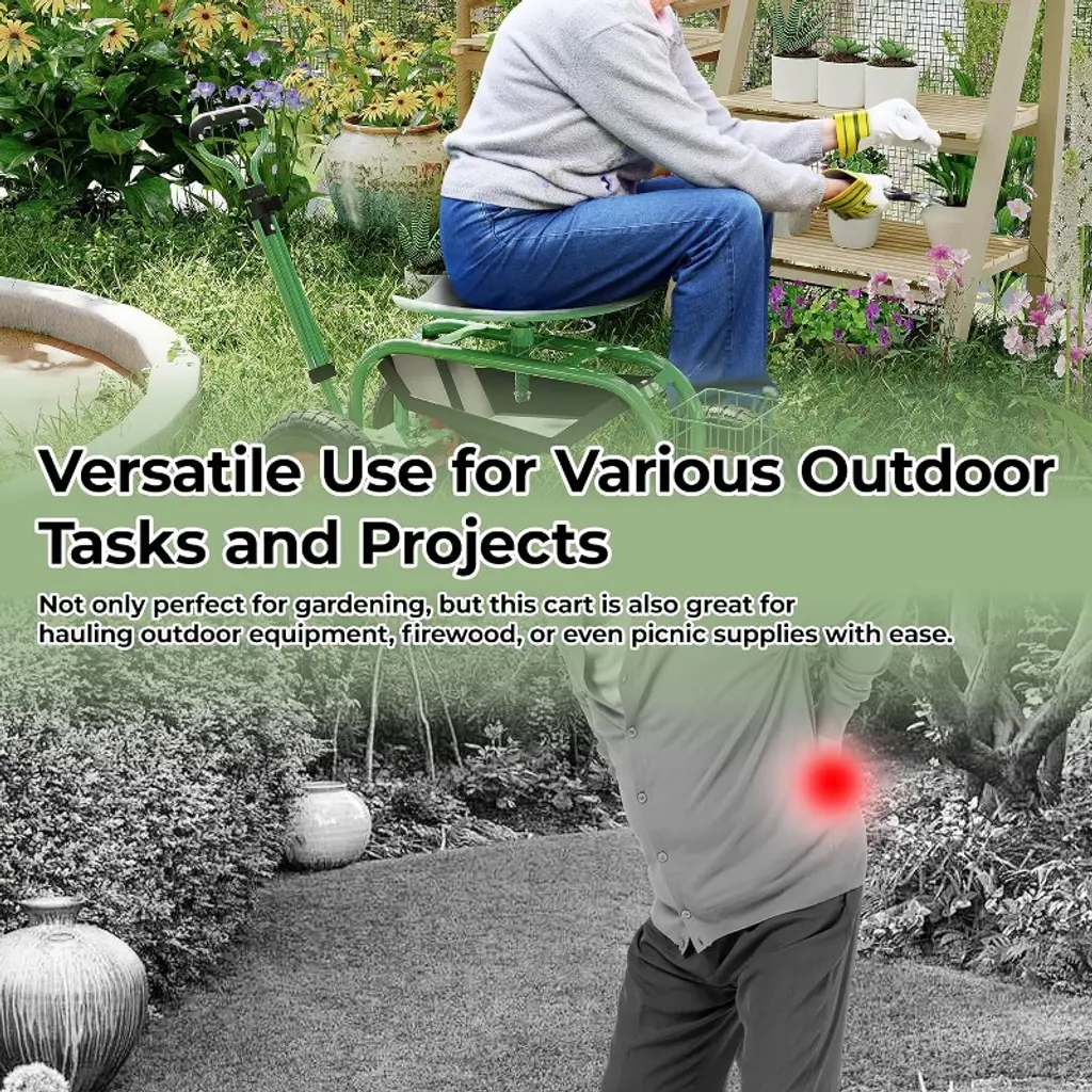 Maximize efficiency and comfort in your garden with this industrial-grade rolling cart, engineered to tackle demanding tasks like planting, weeding, and landscaping. Featuring a 360° swivel seat, height-adjustable steel frame, and all-terrain wheels, this versatile cart keeps tools organized and your body supported—no more sore knees or cluttered workspaces!