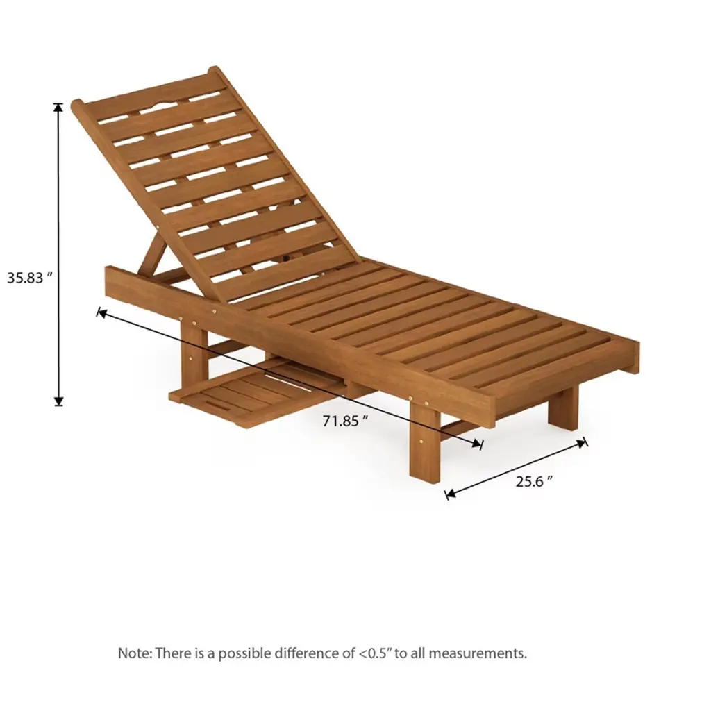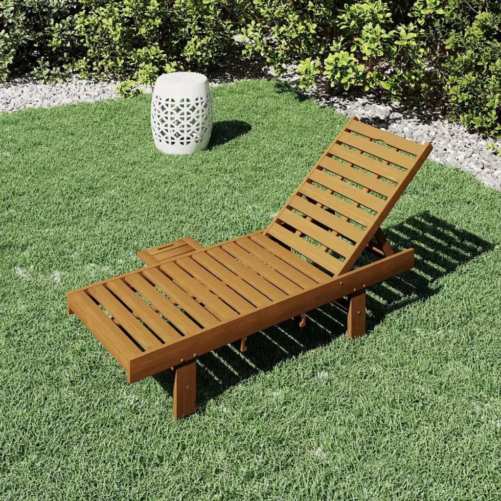HOMLUX brings functional elegance to your outdoor retreat with this wooden sun lounger. Its compact design includes a built-in tray and adjustable backrest. Treated with teak oil, it resists weather while offering timeless beauty and comfort in smaller spaces.