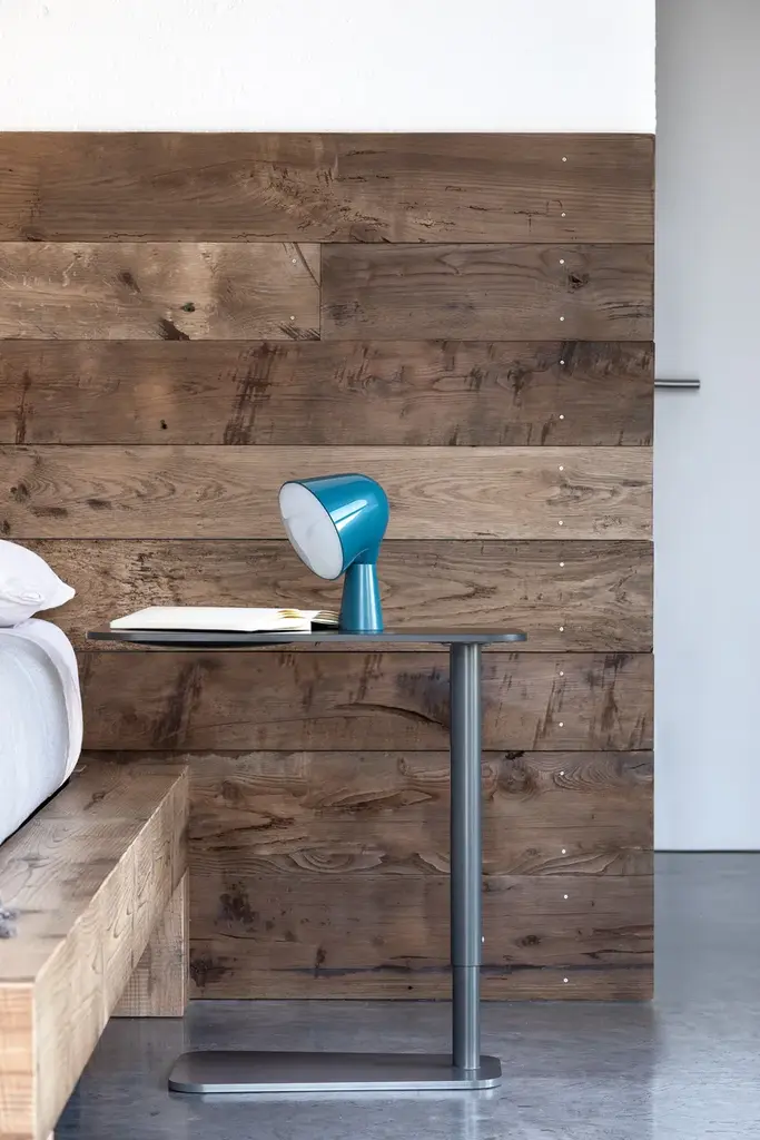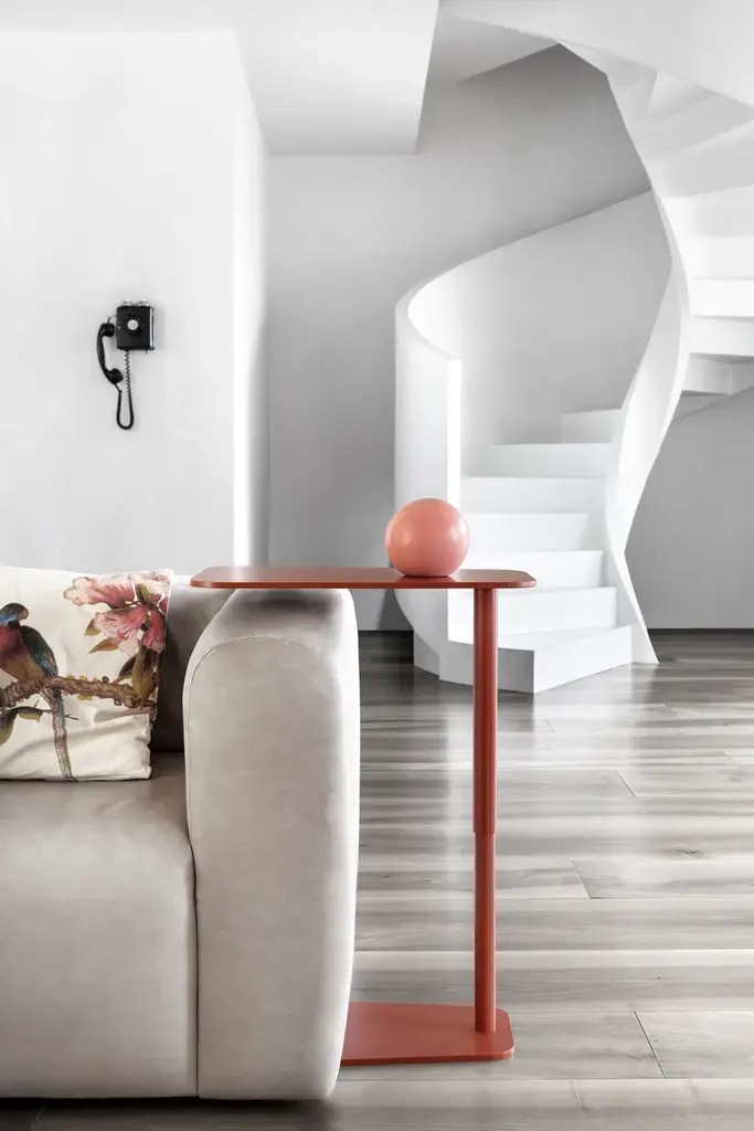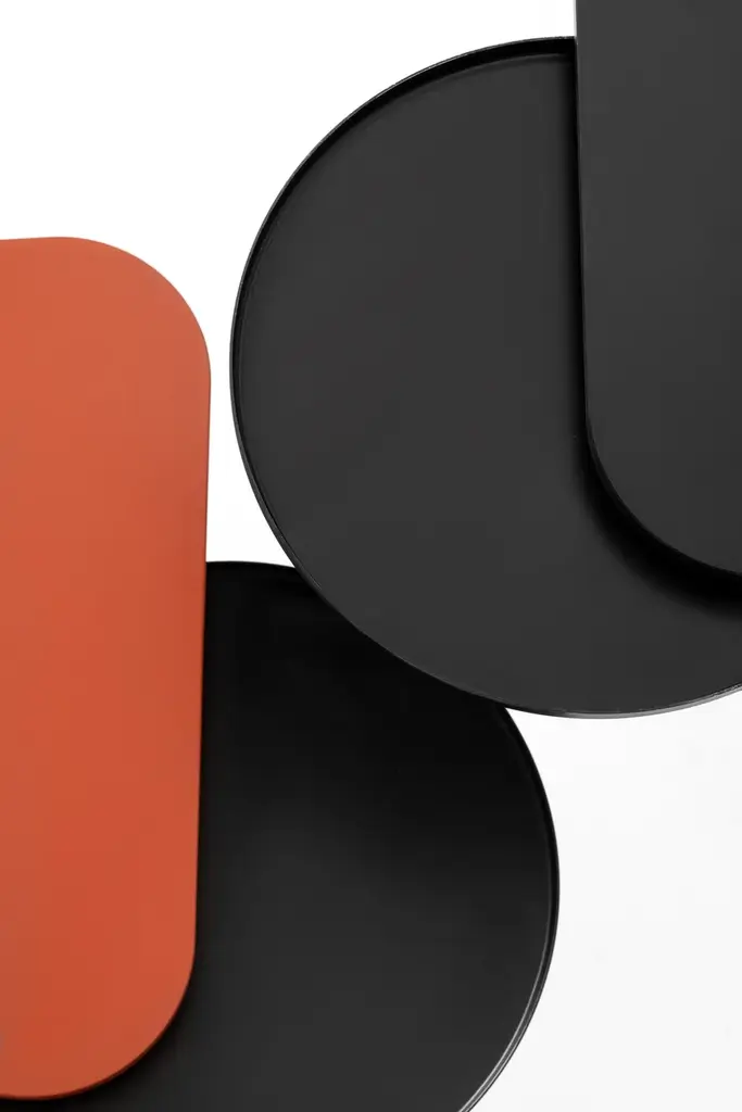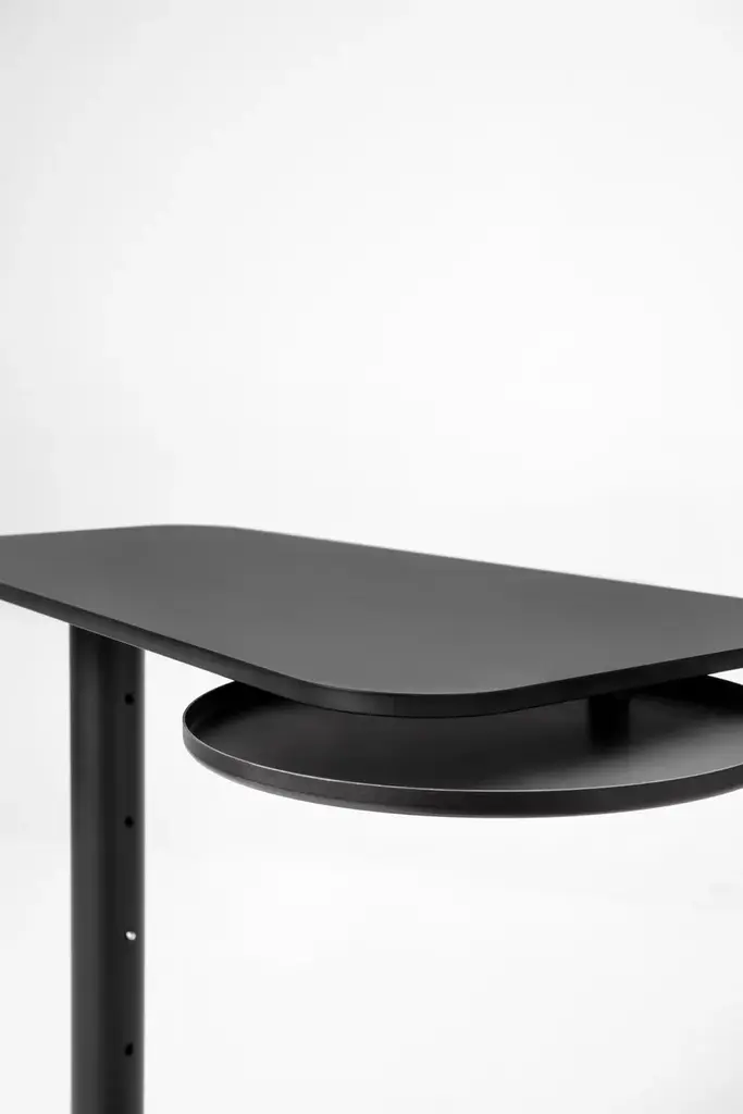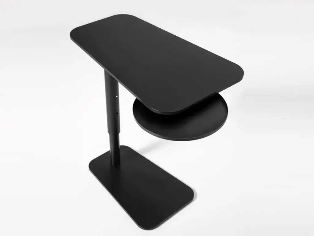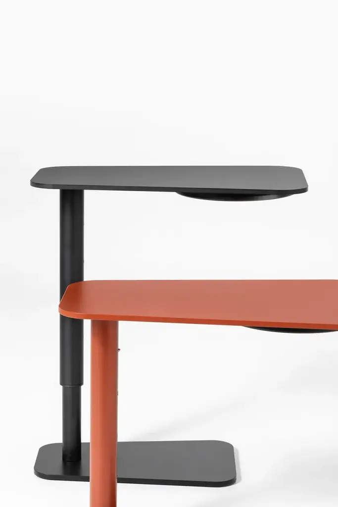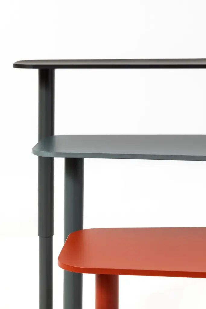 Jens is a design coffee table, ideal to be placed next to the sofa or bed, adjustable in height in three positions, with a small metal tray under the top. Low table with adjustable height, metal structure painted in different RAL colors and HPL top in the same color or lacquered in RAL.