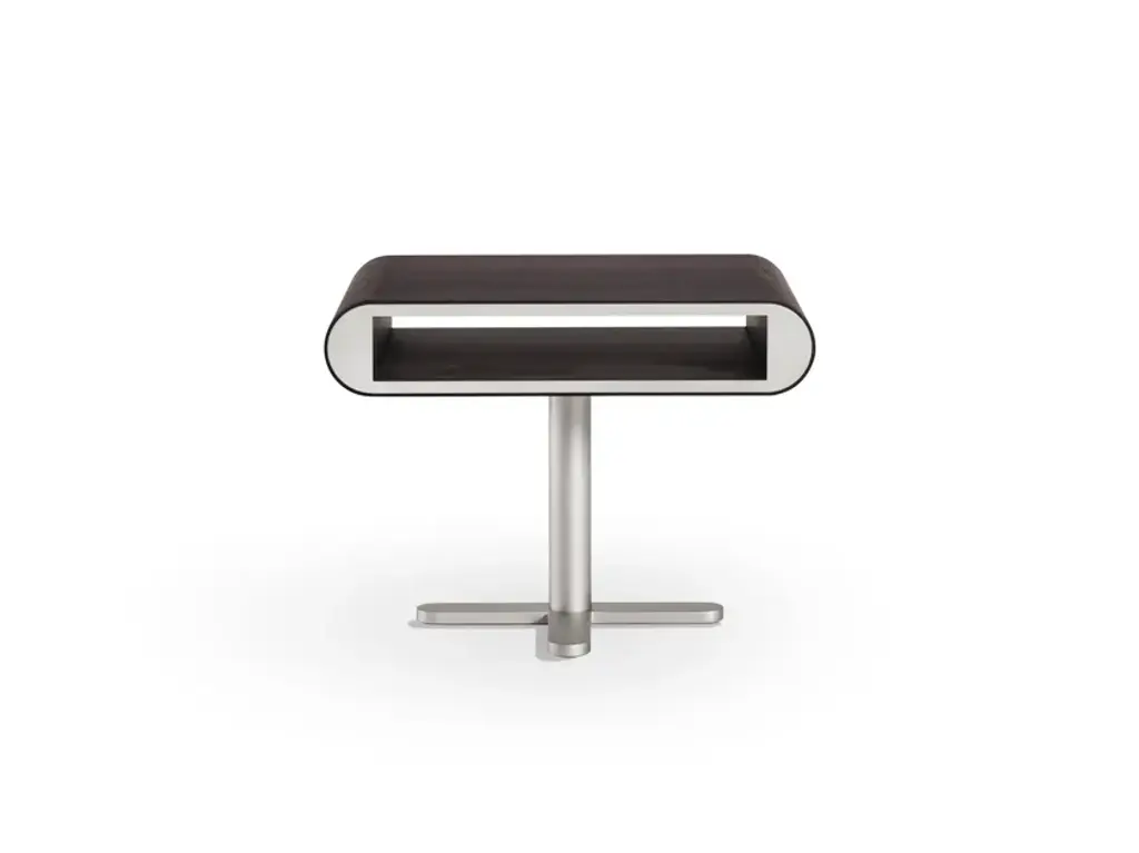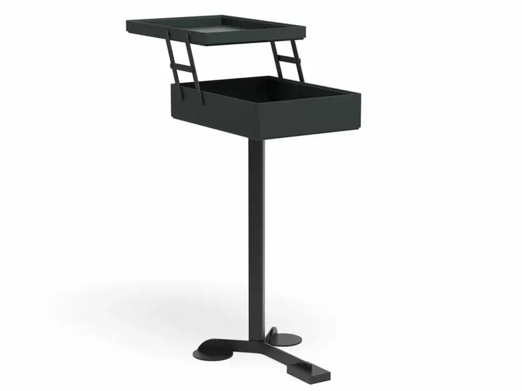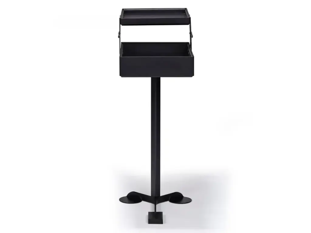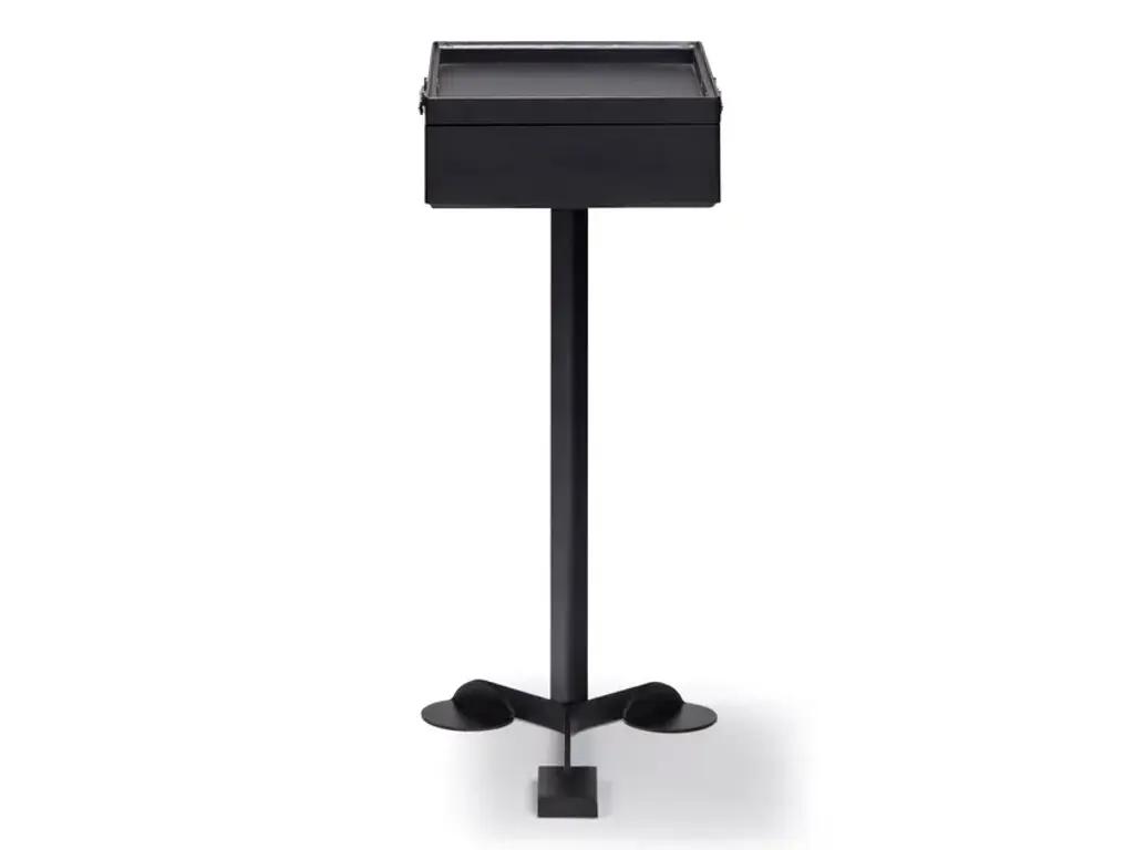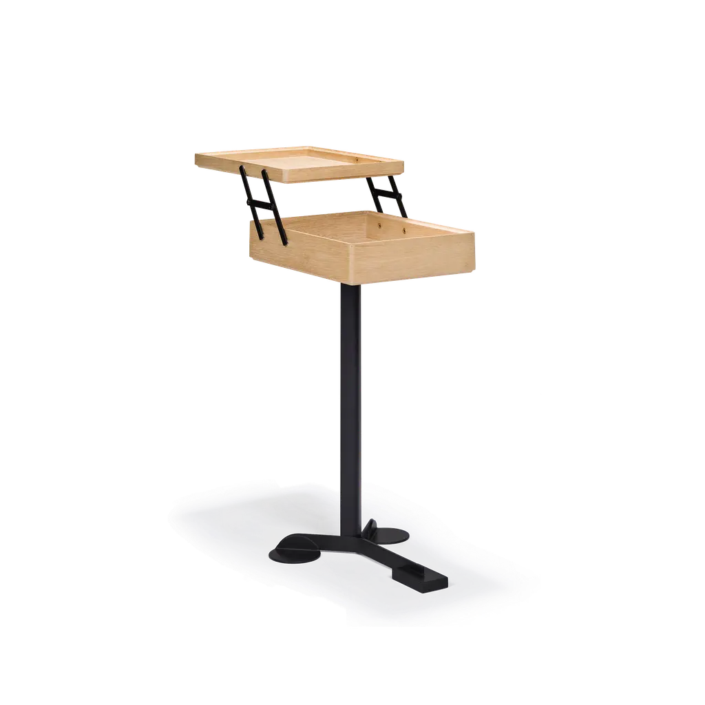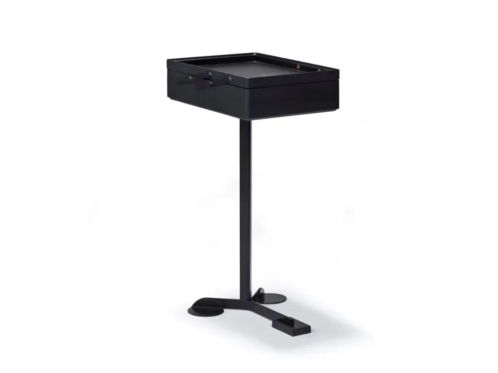 Poised on a slim metal stem, Comodo’s wood cabinet is set off-centre with a lidded compartment. Castiglioni and Pozzi’s elegant multi-purpose unit can be used as a bedside table, a tray, a coffee table or simply as a storage box for all your favourites. Supposedly Castiglioni, being a big fan of sweets, used his own Comodo to store candy. Material: Cabinet in solid and veneered oak, frame in steelColour: BlackFinish: Lacquered cabinet, powder coated frame