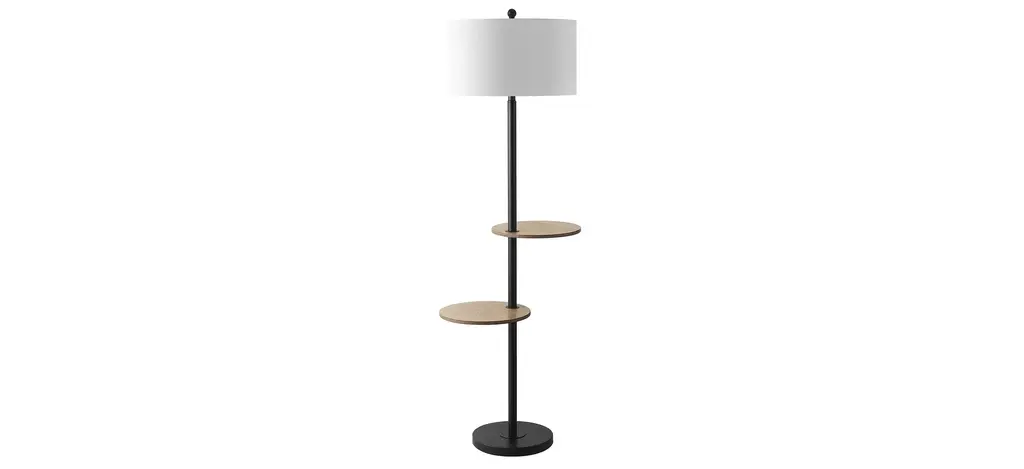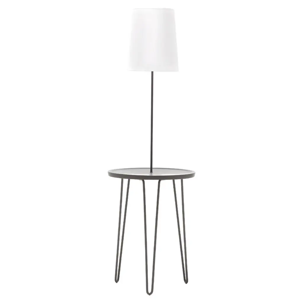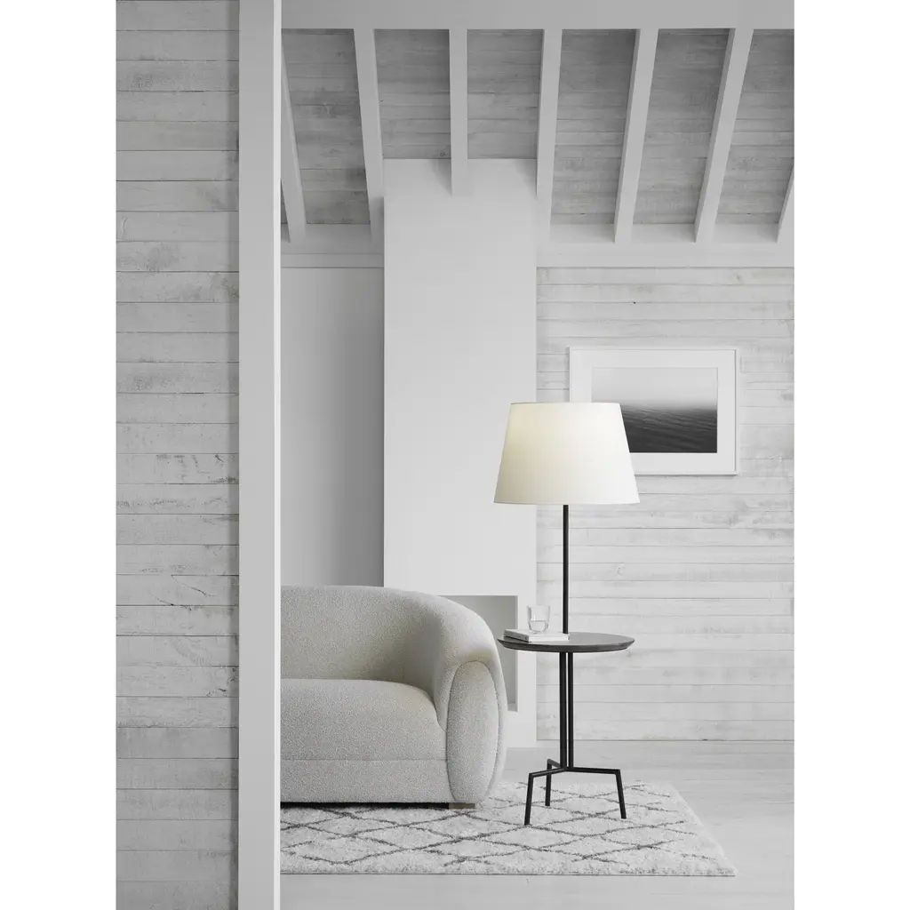 Tavlian Large Tray Table Floor Lamp in Aged Iron and Gray Marble with Linen Shade