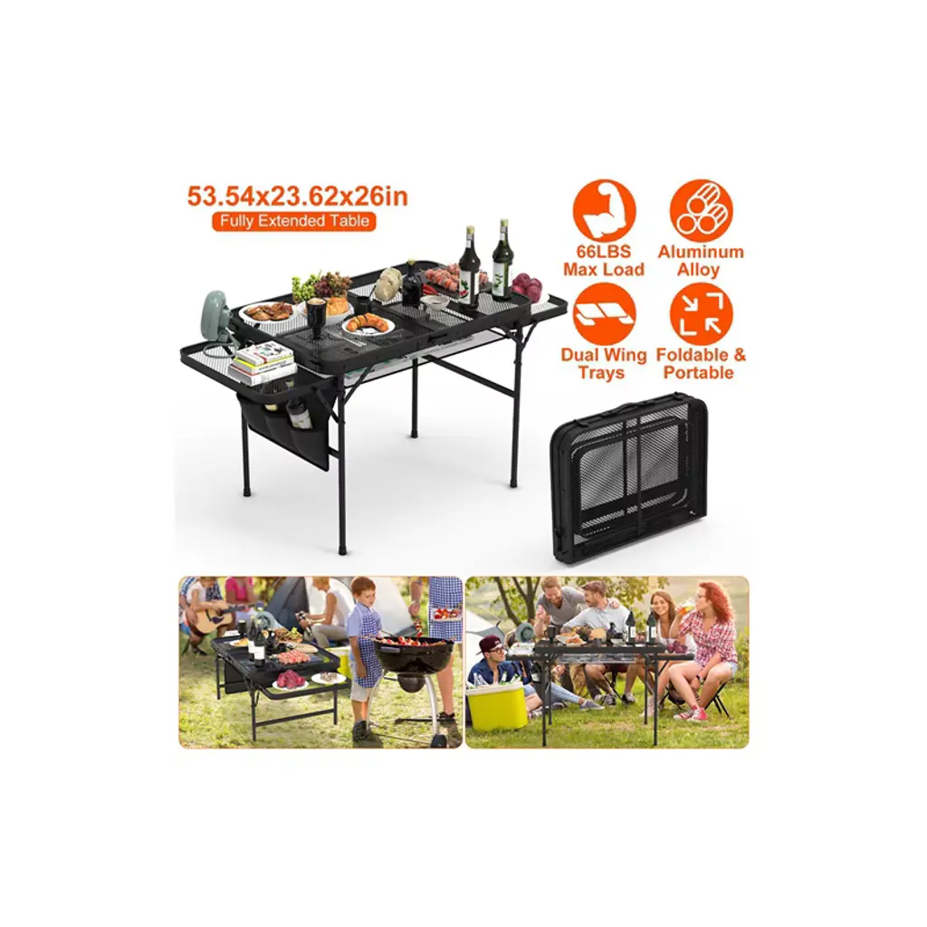 Lakeforest"foldable Aluminum Camping Table With Adjustable Height, 66lbs Max Load & Side Wing Trays"black