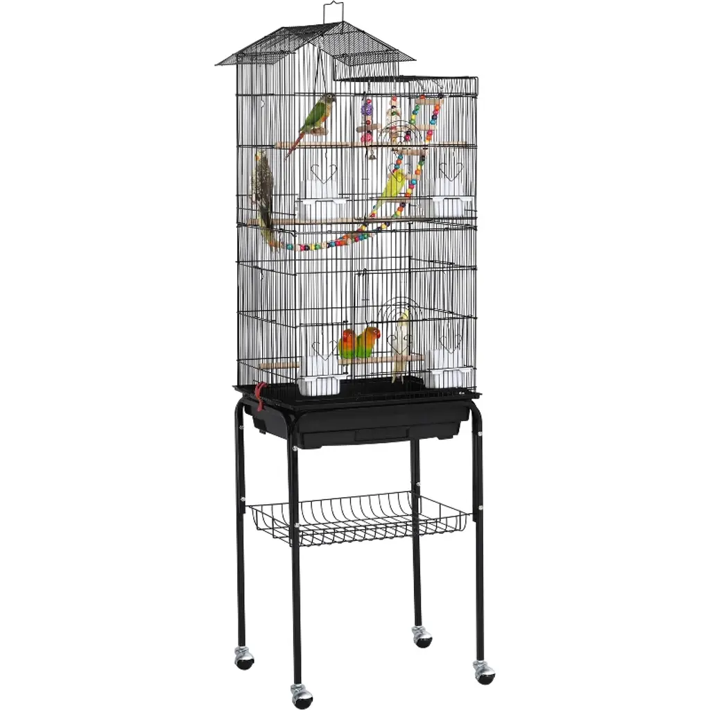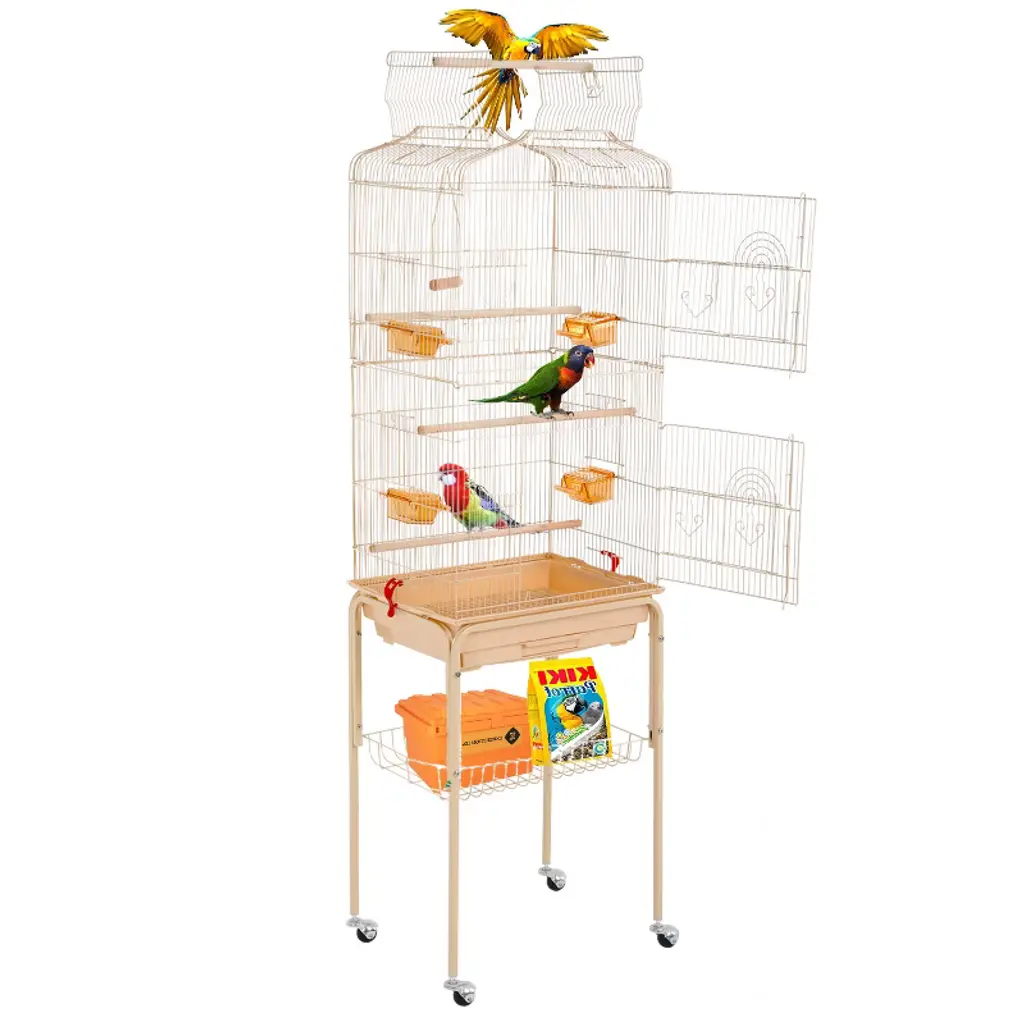 Large Parakeet Cage With Rolling Stand, Spacious Bird Home With Detachable Base, Easy-clean Tray Included, Mobile & Stable Design