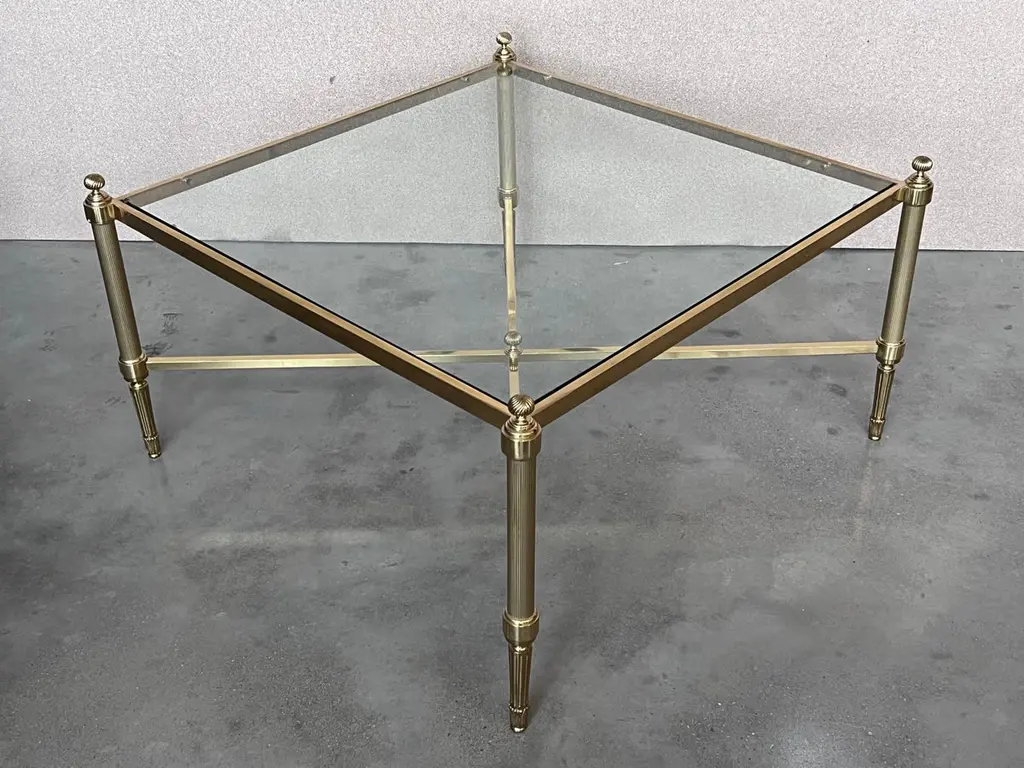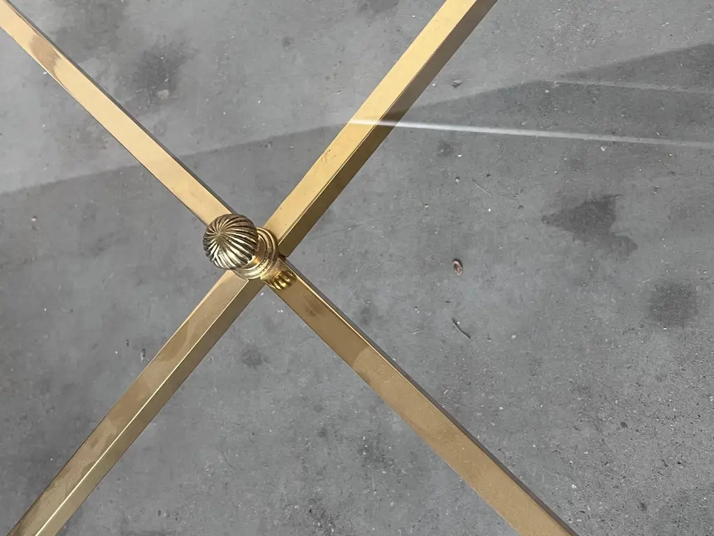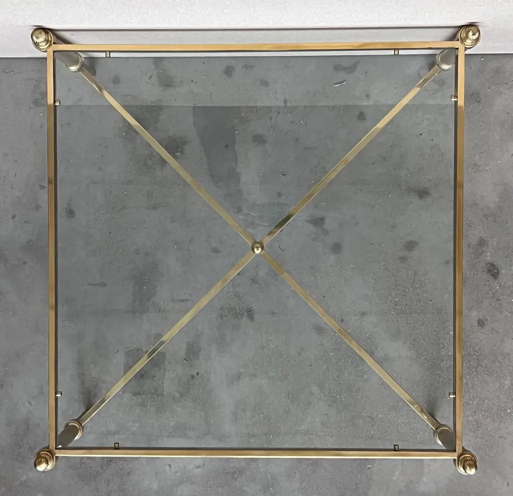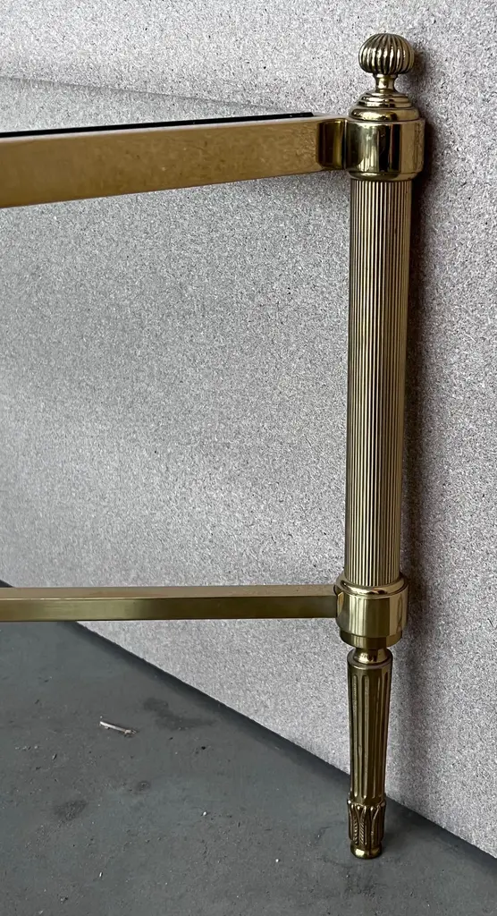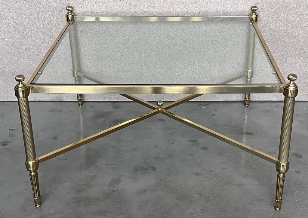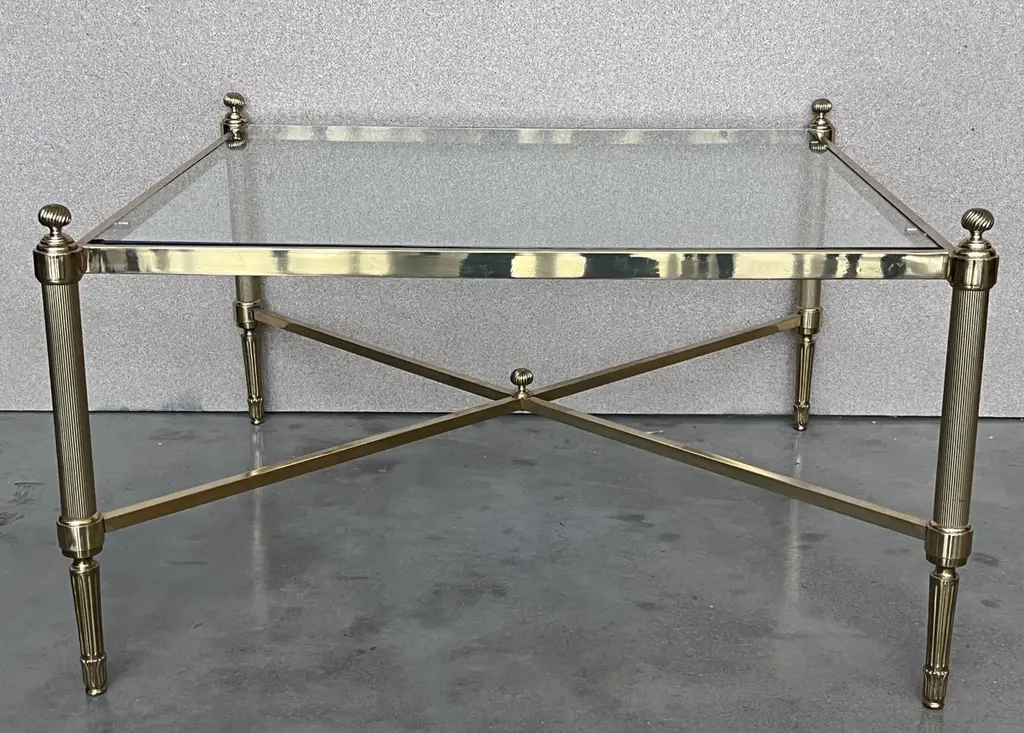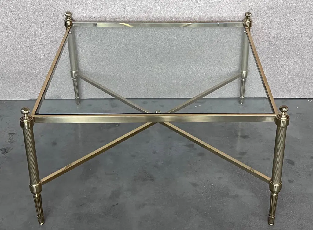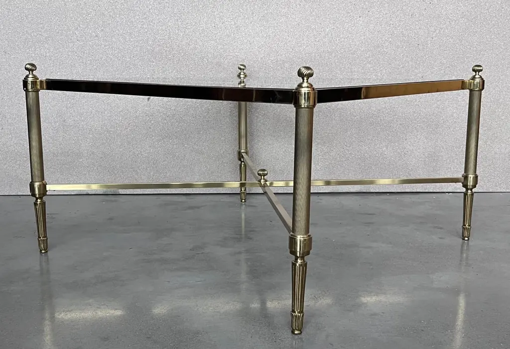 Double tray Mid-Century coffee table in Maison Jansen Style. Neoclassical style Bronze frame and crystal glass top.