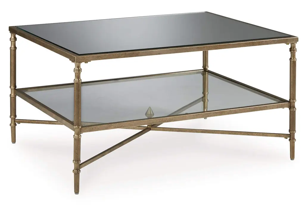 Mid-Century Double Tray Bronze & Glass Coffee Table In Maison Jansen Style
