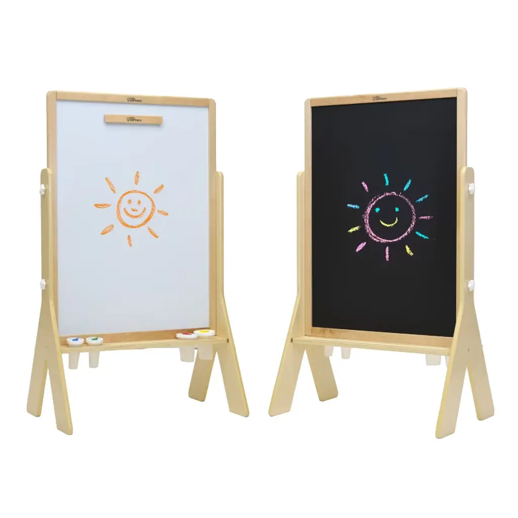Natural Adjustable Double-Sided Easel With 3 Paint Cups And 2 Small Tool Trays - 17"-21.5" X 21.5" X 45.5"-57.5" - Natural