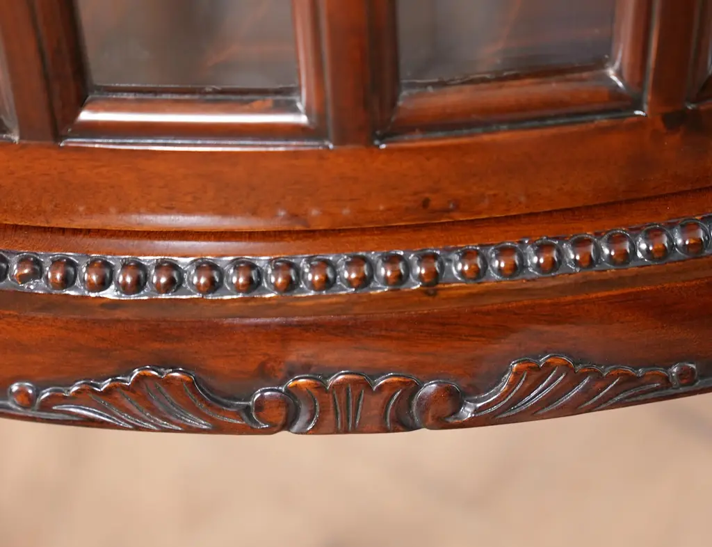 The Oval Tray Top Mahogany Display Table from Niagara Furniture is an exercise in elegance. The sweeping mahogany legs are created by hand and support the table’s finely carved skirt and glassed in display area which itself features individual bevelled panes of glass. All of this is capped off with a top that can be used a serving tray! Hand carved by master craftsmen each Oval Tray Top Mahogany Display Table is a work of art in itself combining the ingredients of glass with solid mahogany to create a beautiful addition to any setting. Measures 19″w x 29″d x 31″h