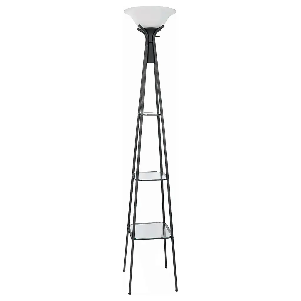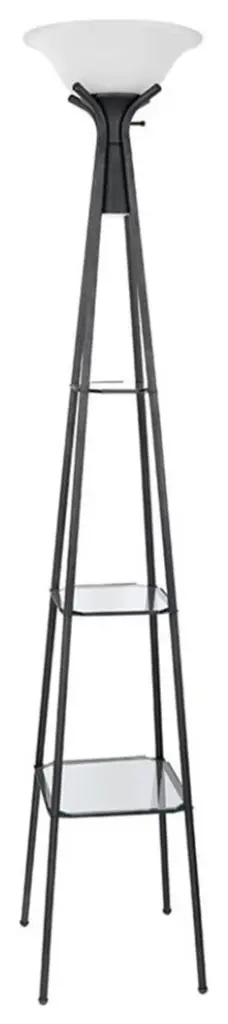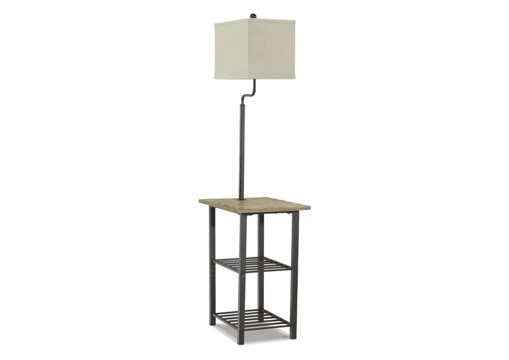 The Nimes Tray Table LED Floor Lamp from Visual Comfort Signature adroitly pairs abstract design with stark functionality. A clever Kelly Wearstler design ascending from three faceted legs, it secures a square tray table beneath strong lamping set inside a blocky, hooded housing, cutting glare to the sides and reflecting warm ambiance to the sides while a focused task light extends onto the table, offering excellent illumination and tasteful task lighting.