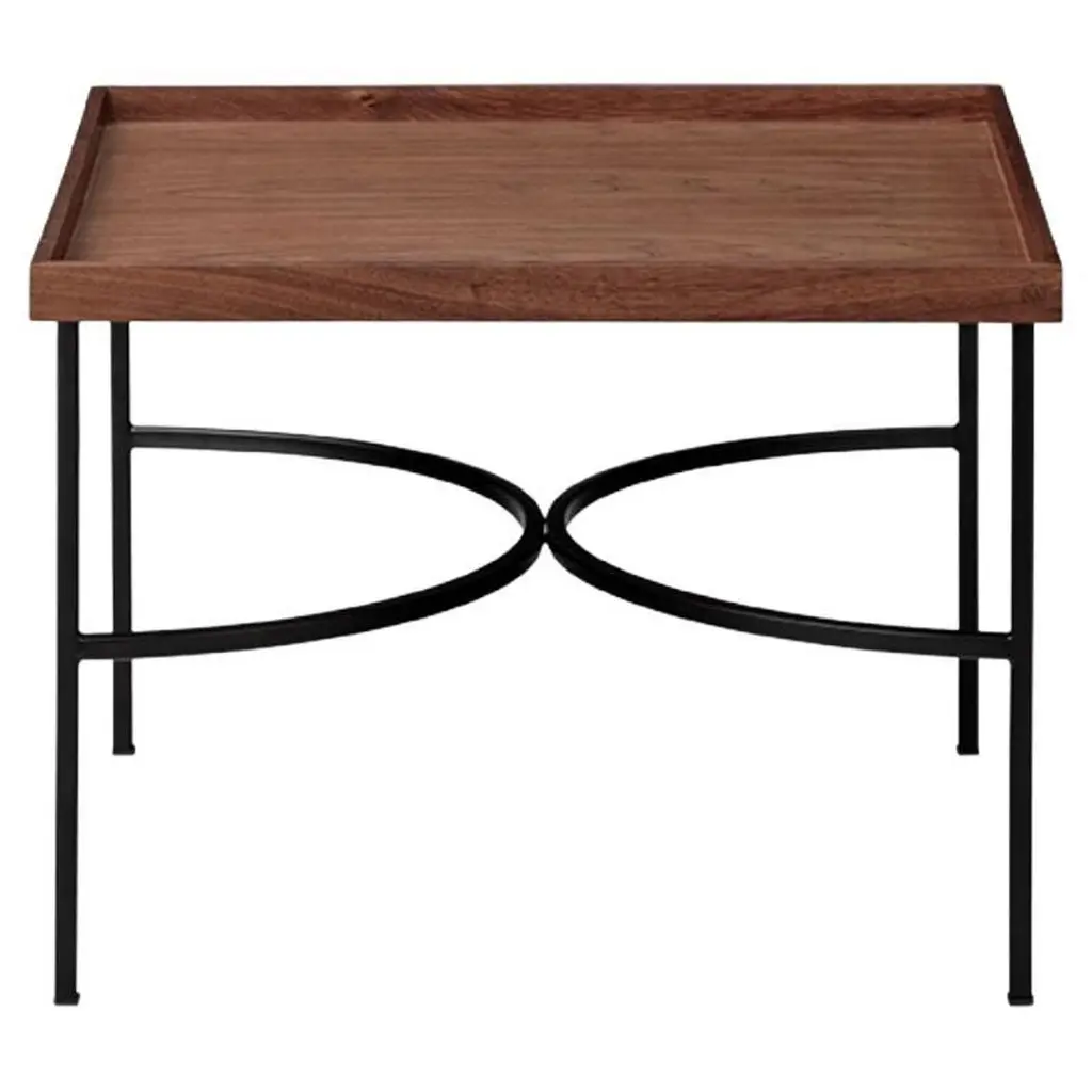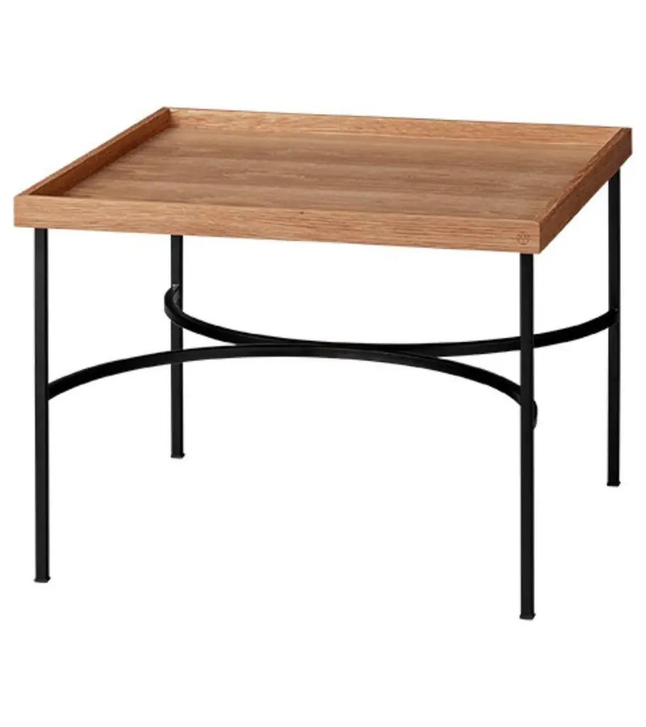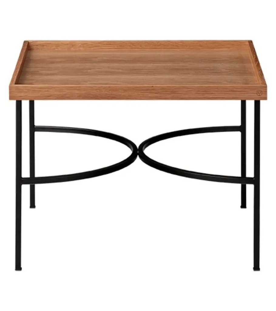 Oak and black contemporary tray tableDimensions: D 52.5 x W 52.5 x H 38 cm Materials: Natural oak, iron with powder coating, or iron with brass plating.Available in black, oak, walnut, and black or gold powder-coated base.Impeccable quality and sophisticated shapes are some of the many features of this beautiful Unity tray table. The variety of colors of metal frames and wooden will ensure the personalization of your style. We recommend enrichment of your Unity table with decorative and highly functional Unity trays that come in many surprising shapes and a variety of lovely colors.
