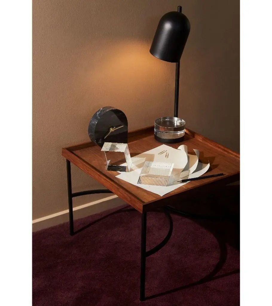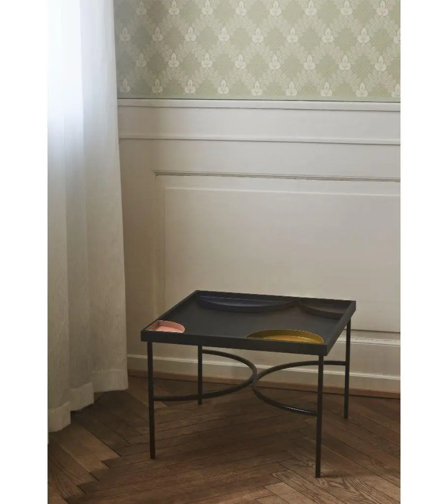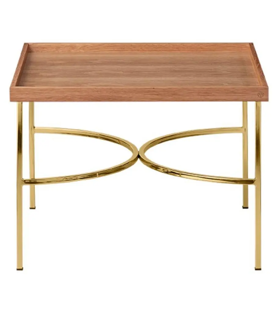 Oak and Gold Contemporary Tray Table Dimensions: D 52.5 x W 52.5 x H 38 cm Materials: Natural Walnut, Iron with Powder Coating, or Iron with Brass Plating.Available in Black, Oak, Walnut, and Black or Gold Powder-Coated Base. Please contact us for more information. Impeccable quality and sophisticated shapes are some of the many features of this beautiful Unity tray table. The variety of colors of metal frames and wooden will ensure the personalization of your style. We recommend enrichment of your Unity table with decorative and highly functional Unity trays that come in many surprising shapes and a variety of lovely colors.