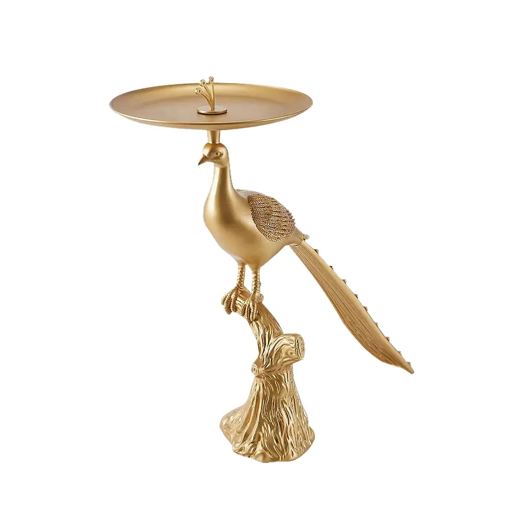 Peacock Figurine Art Deco Gold Side Table With Tray Top